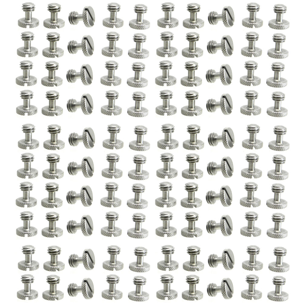 This pack of Knurled 3/8"-16 Slotted Screws from Desmond consists of 100 stainless steel screws that are ideal for Sachtler and Manfrotto quick-release plates.