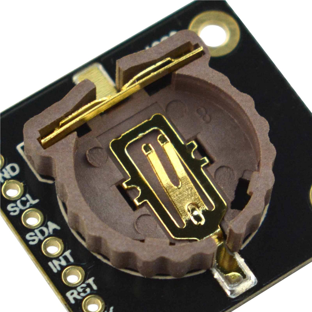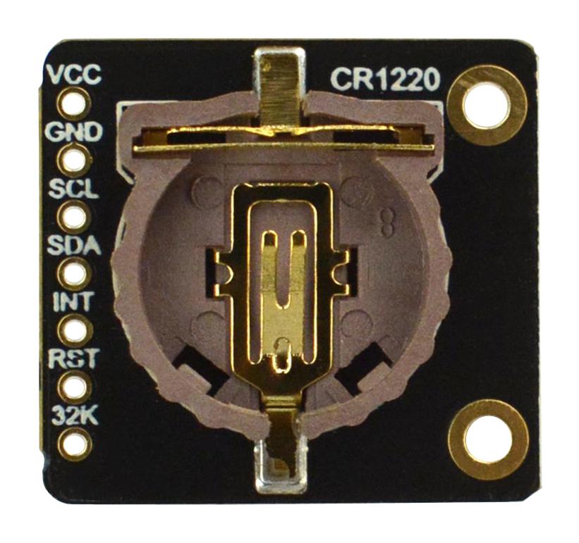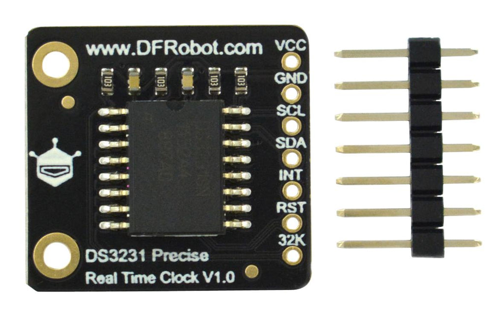 Fermion DS3231 precise RTC (breakout). This real-time clock module (RTC) uses the DS3231 chip that integrates a crystal resonator and a temperature compensator which improves the long-term accuracy of the module. In the range of -40°C to +85°C the accuracy of DS3231 remains at ±3.5ppm (±0.3024 seconds/day). The device incorporates a battery input and maintains high precision timing when main power to the device is interrupted. The RTC provides information of seconds, minutes, hours, week, day, month and year and it can automatically adjust the date at the end of the month including corrections for leap year. The clock operates in either the 24hour or 12hour format with AM/PM indicator. Two programmable time of day alarms and a programmable square-wave output are provided. In addition, the RST pin can be used as a push-button input for microprocessor reset.