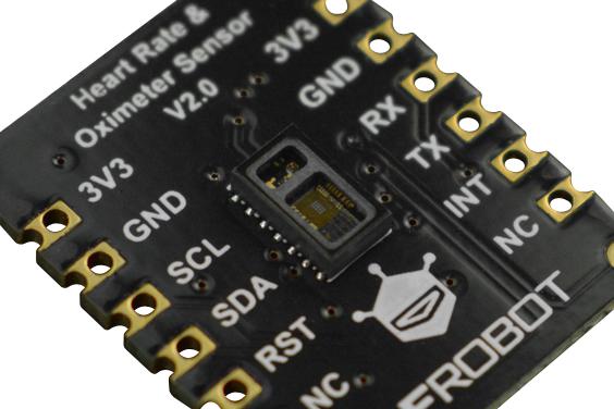 SEN0344 is a Fermion: MAX30102 heart rate and oximeter sensor V2.0. The DFRobot heart rate and oximeter sensor integrates the Analog DevicesMAX30102 chip and an MCU with heart rate and oximetry algorithm. The MAX30102 uses PPG(Photo Plethysmography) to measure data, which will be converted into heart rate and oximetry values when processed by the MCU, then output through I2C or UART, making the sensor easy to use and greatly reducing resource occupation of main controller. Meanwhile, the corresponding upper computer is provided to allow you to conveniently read data by a PC. Typical applications include heart rate blood oxygen project, home heart rate oximeter and long-term heart rate and blood oxygen monitoring project.
