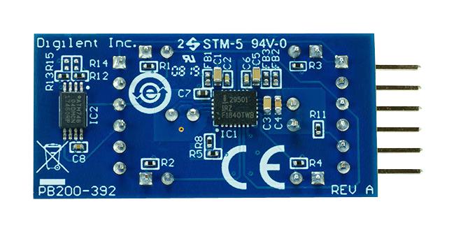 Pmod ToF (Time of Flight) is a sensor that enables optical distance sensing at low power. The on-chip digital signal processor on the ISL29501 calculates the time it takes for light emitted by the ToF to travel to the target and back, which is proportional to the distance to the target. The Pmod ToF can measure distances of up to five meters.