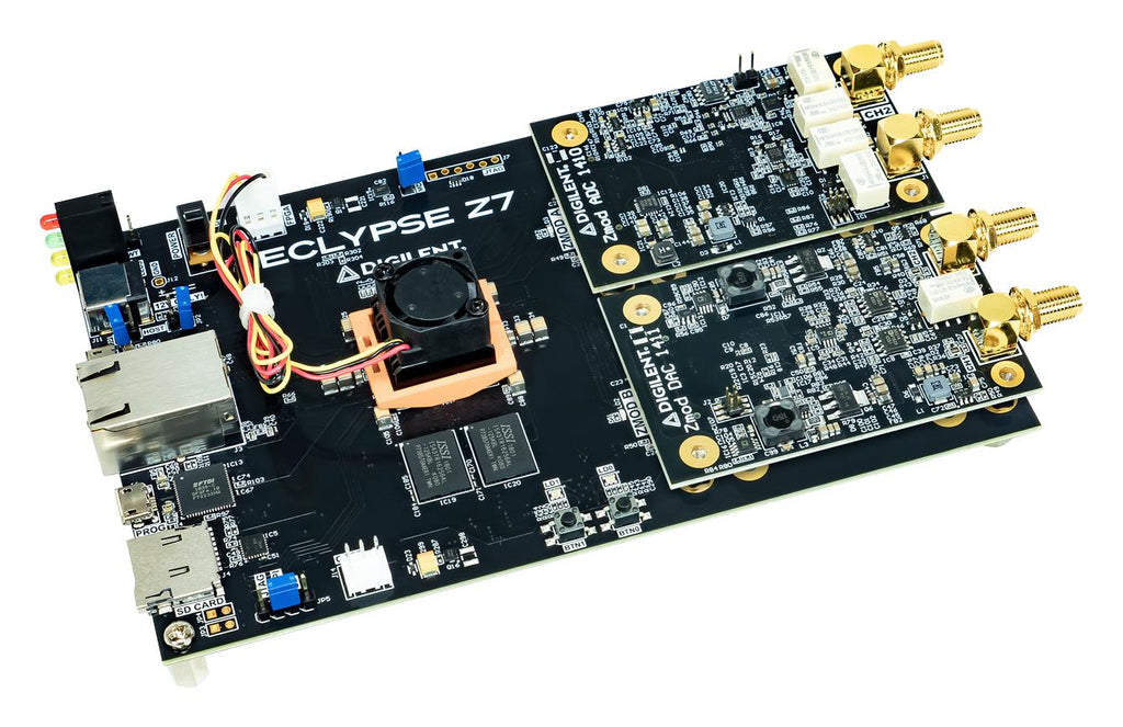 - Eclypse Z7 Zynq-7000 SoC development board bundled with a Zmod DAC and Zmod ADC