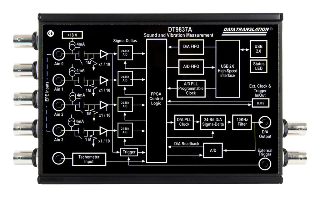 DIGILENT 6069-410-041 Dynamic Signal Analyzer, MCC DT9837A, 4 Channels for IEPE Sensors, 52.7 kS/S, 24 Bit, 1 Tachometer
