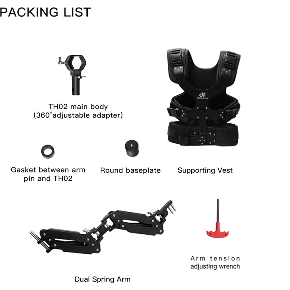 The dual-spring arm mounts on the front of the vest and features two adjustable joints for smooth movement in multiple directions. The gimbal installs using the universal yoke and can be used for right- or left-arm operation.