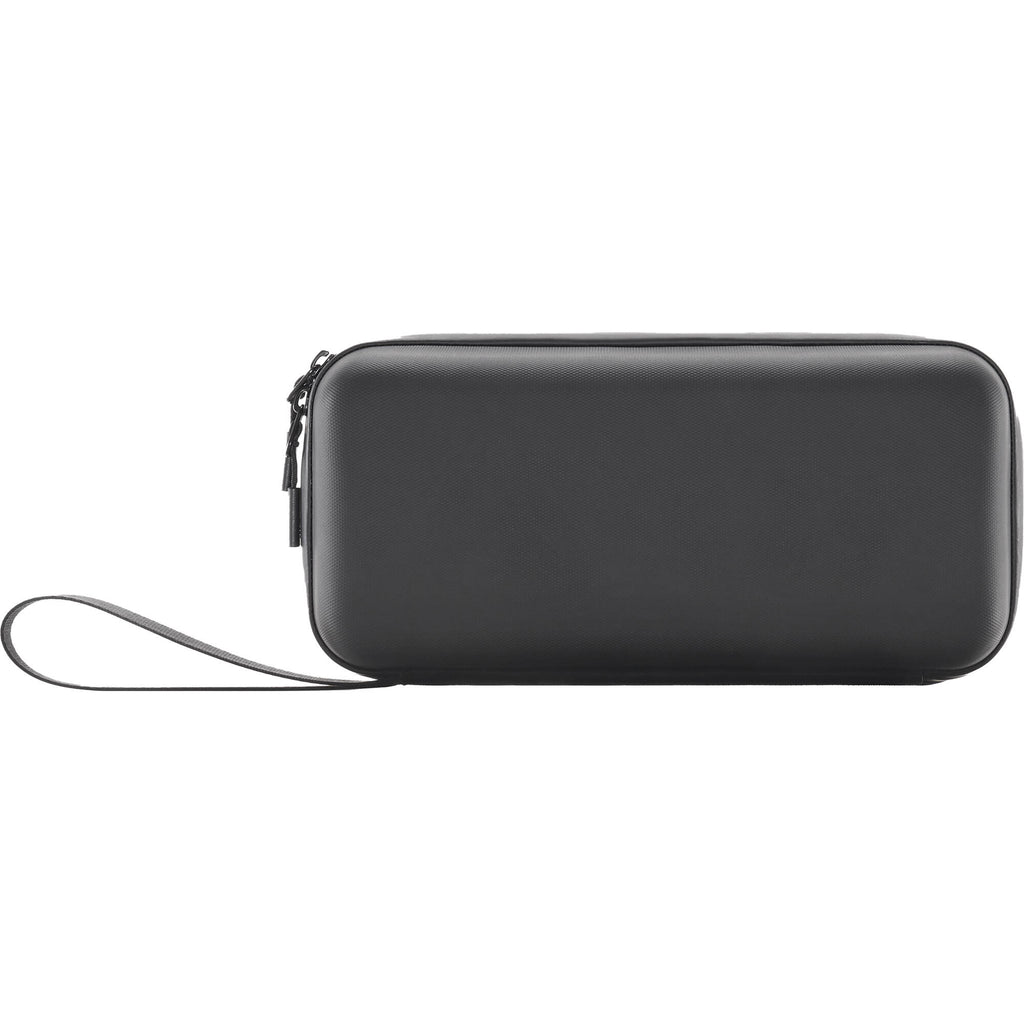 Store your Osmo Action 3, 4, or 5 Pro camera and its accessories in this Carrying Bag from DJI. The bag features a hard-shell exterior and layered interior storage compartments that accommodate a selfie stick, a microphone system with charging case, and the camera. A zipper closure keeps everything secure inside and an integrated wrist strap makes for easy transport.