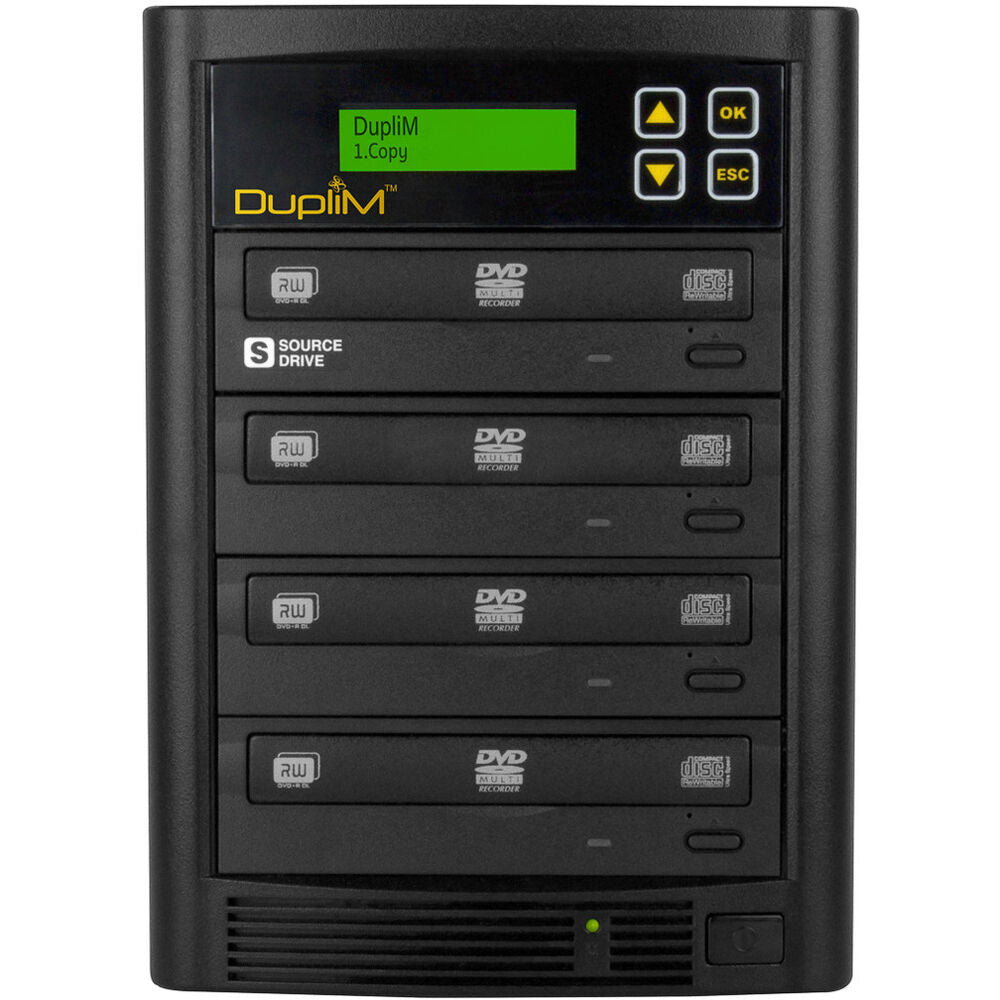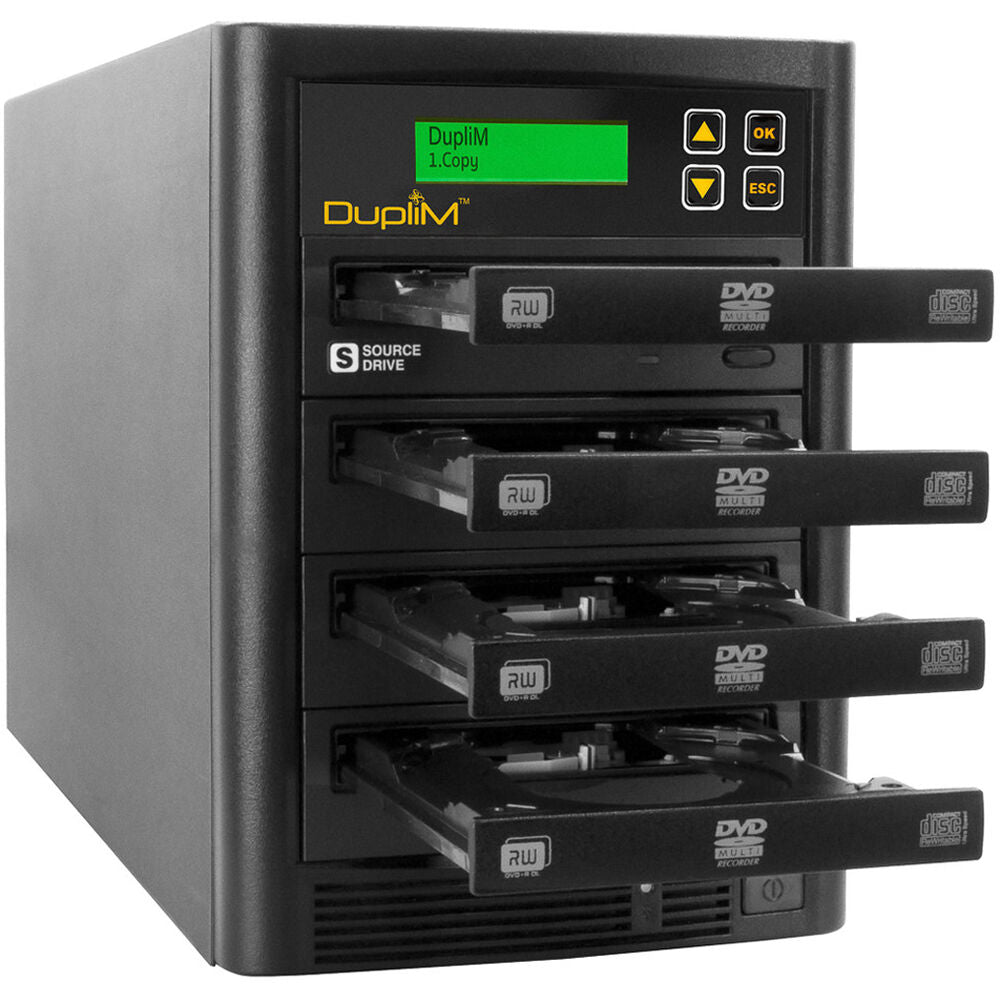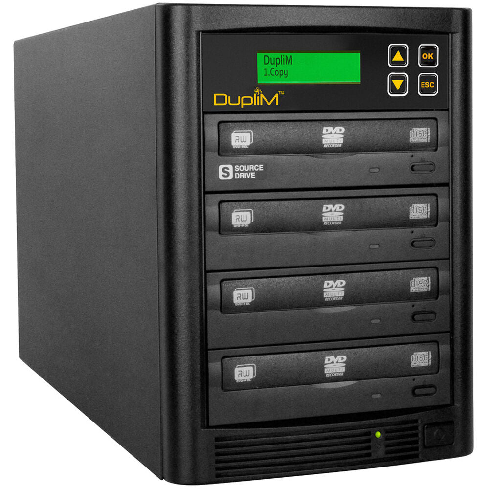 Whether you are a photographer looking to share your best shots with others or a business professional looking to create multiple backup copies of sensitive data, the DupliM DVD/CD Copy Tower Standalone Duplicator can help. This duplicator makes seamless efficient copying possible with 3 target bays, 128MB buffer memory, and support for a wide range of DVDs and CDs. Achieve speeds up to 22x for DVDs and 48x for CDs, ensuring quick and accurate duplication. Standalone operation enables you to make your copies without the need for a host computer. Simply use the push buttons to navigate the LCD, and you are ready to duplicate.