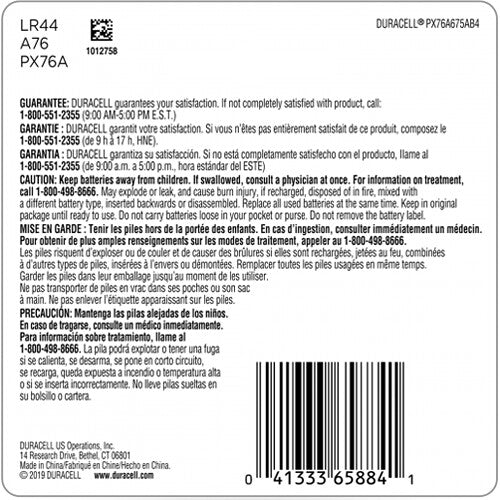 The 76A Alkaline Battery from Duracell has an output of 1.5V and is designed for use in many household items including medical devices, select cameras, watches, toys, key fobs, and more. It provides long-lasting, quality performance.