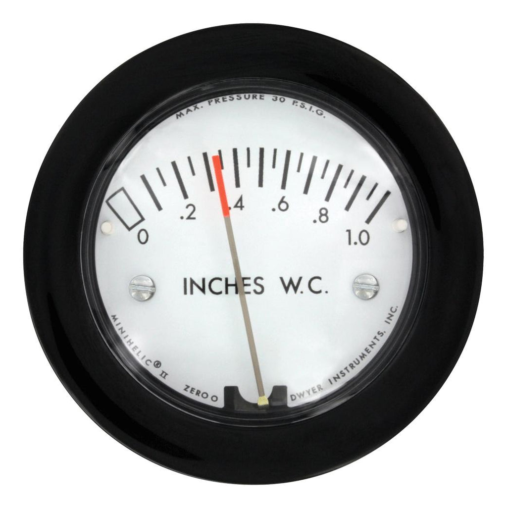 DWYER 2-5000-500PA-NPT Differential Pressure Gauge, 500 Pa, ±5% Accuracy, 1/8" MNPT, -6.67 °C to 48.9 °C
