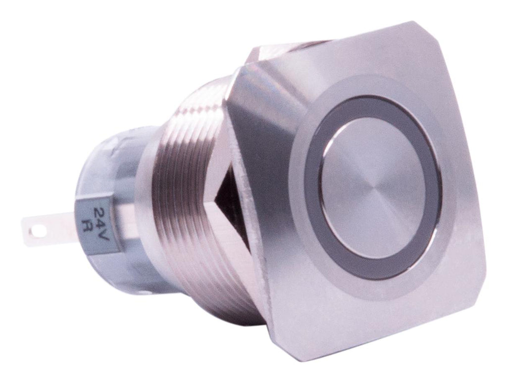 This is a PB SWITCH, DPDT, 2A, 24VDC, PANEL, GREEN product from E-SWITCH with the model number PVS7F2HSS331