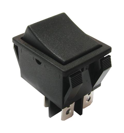 This is a R5ABLKBLKEF0 ROCKER SWITCH , DPST, 20A, 125VAC, BLACK product from E-SWITCH with the model number R5ABLKBLKEF0