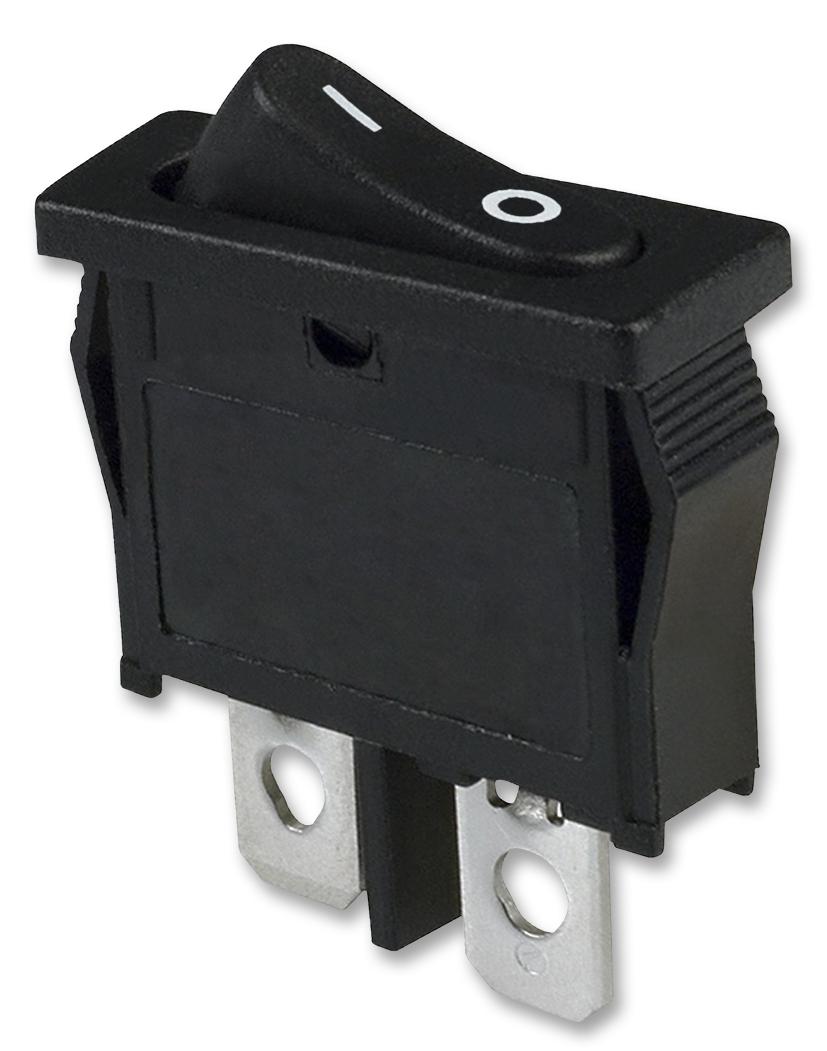 This is a SWITCH, ROCKER, SPST, 10A, 125VAC, BLACK product from E-SWITCH with the model number R6ABLKBLKFF
