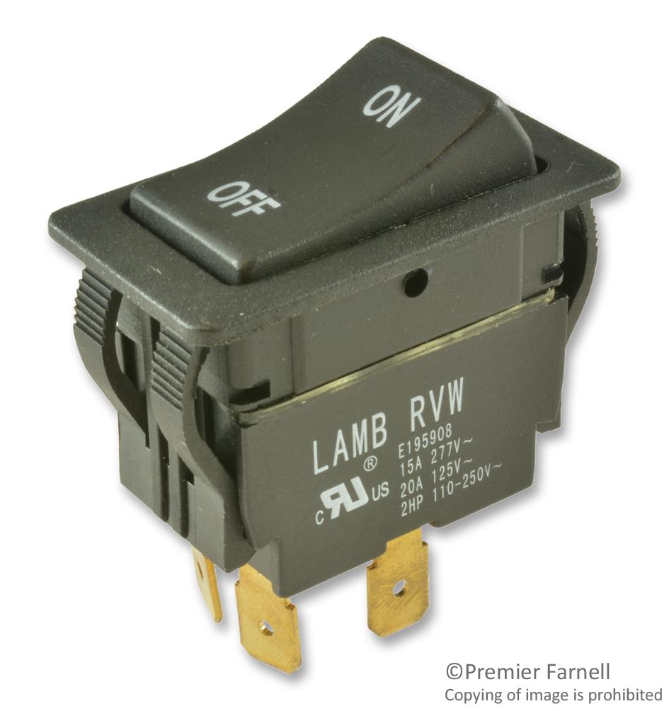 This is a ROCKER SWITCH, DPST, 20A, 125VAC, BLACK product from E-SWITCH with the model number RVW42D1123