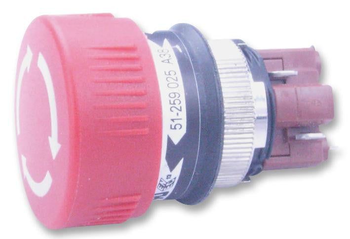 This is a Emergency Stop Switch, 1NO / 1NC, Off-On, Solder, 5 A, 250 V, 250 V product from EAO with the model number 51-256.025
