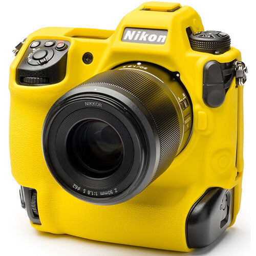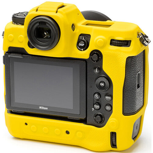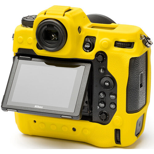 Slim, smooth, and perfectly designed to conform to Nikon Z9 camera bodies, the high-visibility yellow Silicone Protection Cover from easyCover protects your delicate investment from bumps, scratches, sand, and dust. The custom-fit skin provides a secure grip in cold conditions while maintaining full access to all the features, functions, wheels, dials, and buttons.