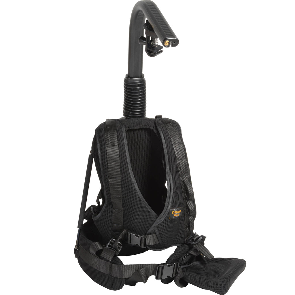 The Easyrig Vario 5 with Cinema Flex Vest & 5" Extended Arm is a body-worn support system that is adjustable to support camera rigs weighing 11 to 38 lb. The system consists of the Vario 5 standard support bar, standard Cinema Flex double shoulder vest, and a 5" extended support arm. A carrying bag is also included for convenient storage and transport of the Easyrig system. The system works by using a suspension line to support the weight of the gimbal rig, taking the load off of your shoulder, neck, and arm muscles, and distributing it across your torso. The tension line is adjustable by turning a screw in the back, letting you dial in the appropriate amount of tension for your rig.