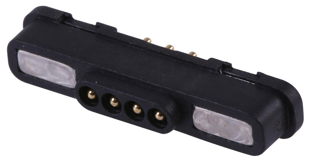 The 685-0042121-111 from EDAC is a 4 Pin magnetic pogo rectangular plug.