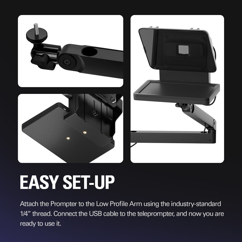- With two 1/4"-20 threads on the base, Prompter attaches to your desktop mount or tripod with ease