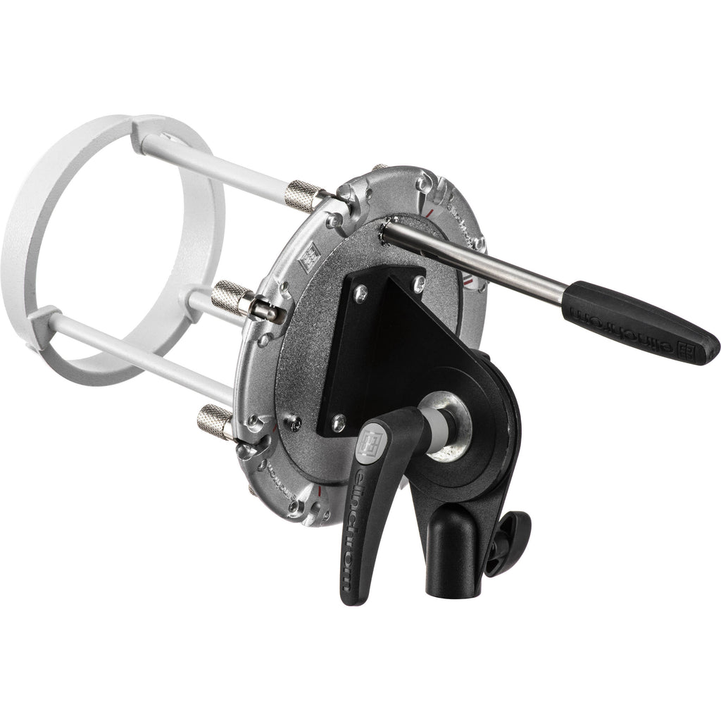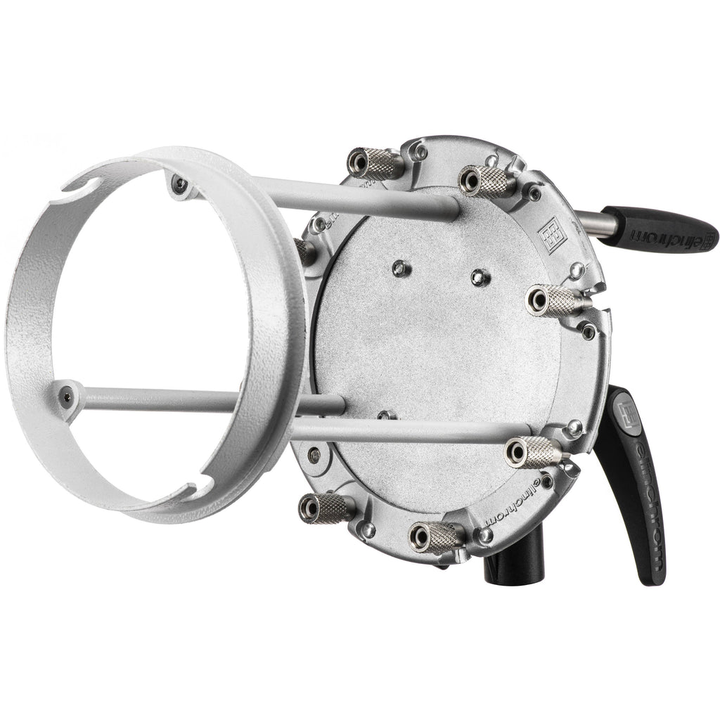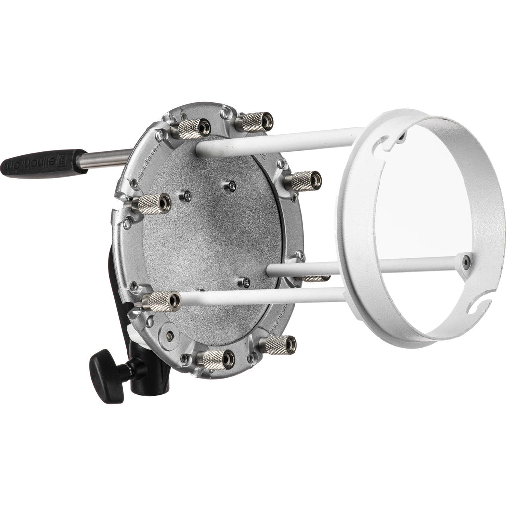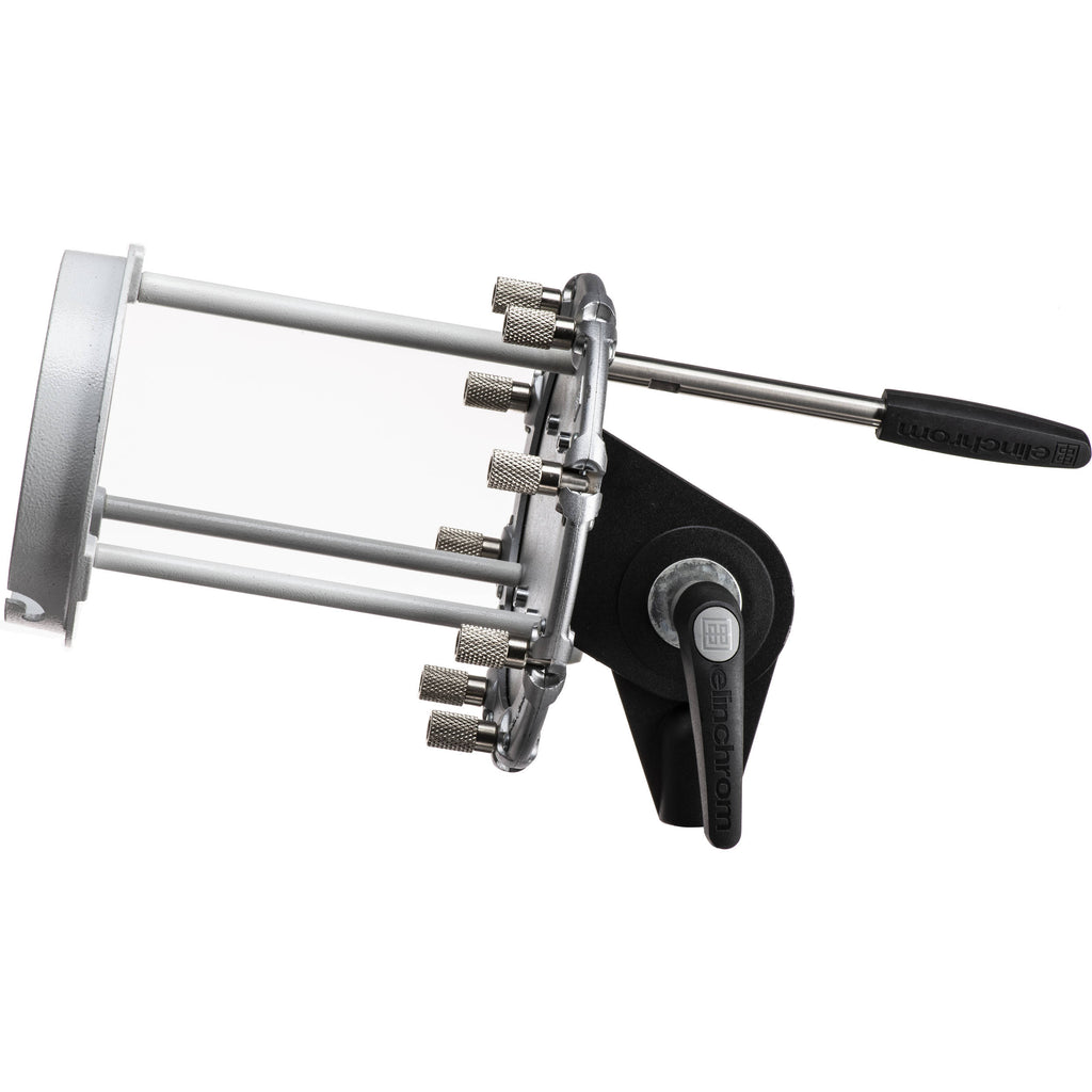 The Speedring for Rotalux Deep Octa Indirect 59" / 150 cm from Elinchrom allows positioning of an Elinchrom flash head facing inward toward the back of the modifier (indirect). The metal speedring has hinged spring-action rod sockets that allow you to initially set up the Rotalux in an untensioned state before opening it to its working size.