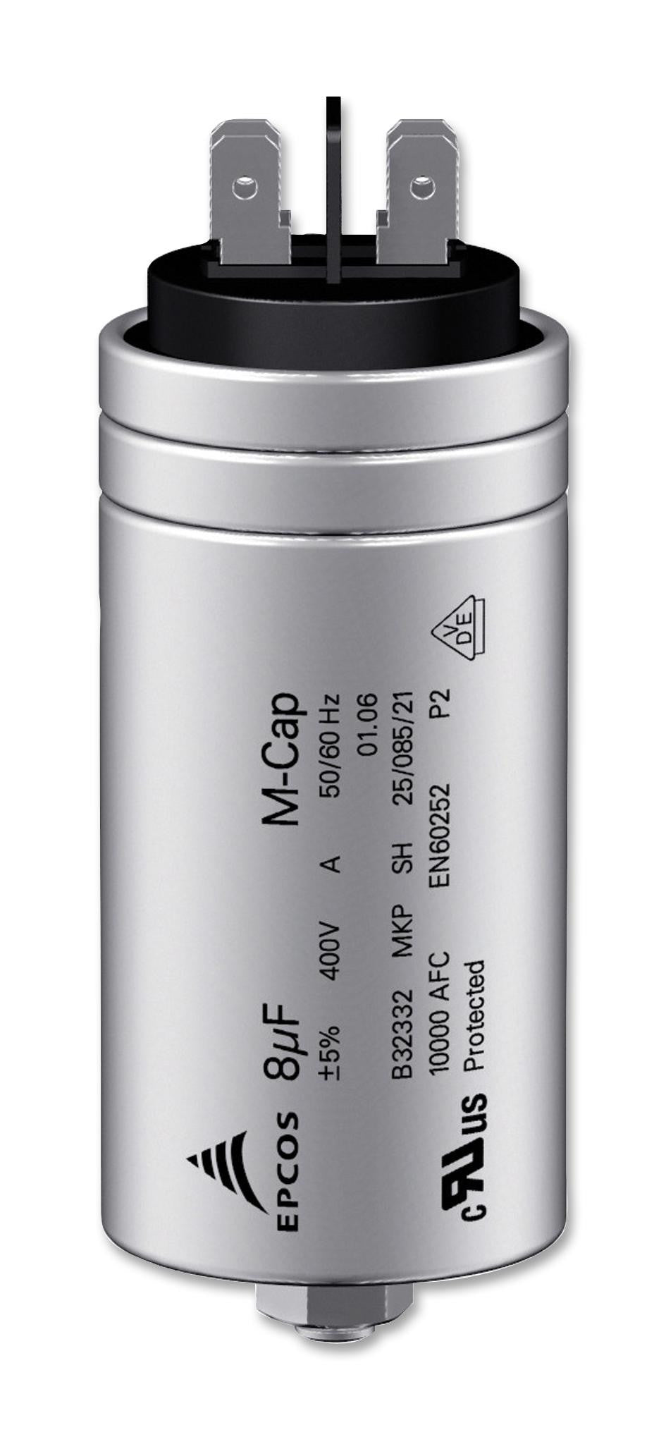 This is a Film Capacitor, Motor Run, 7.5 µF, B32332 Series, 450 V, Quick Connect, Snap-In, ± 5%, 10 V/µs product from EPCOS with the model number B32332I6755J080