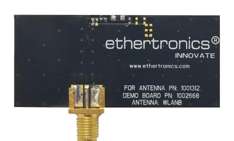 This is a Evaluation Board, 1001312 Antenna, 2.4GHz, Wi-Fi, Bluetooth, Zigbee product from ETHERTRONICS with the model number 1001312-01