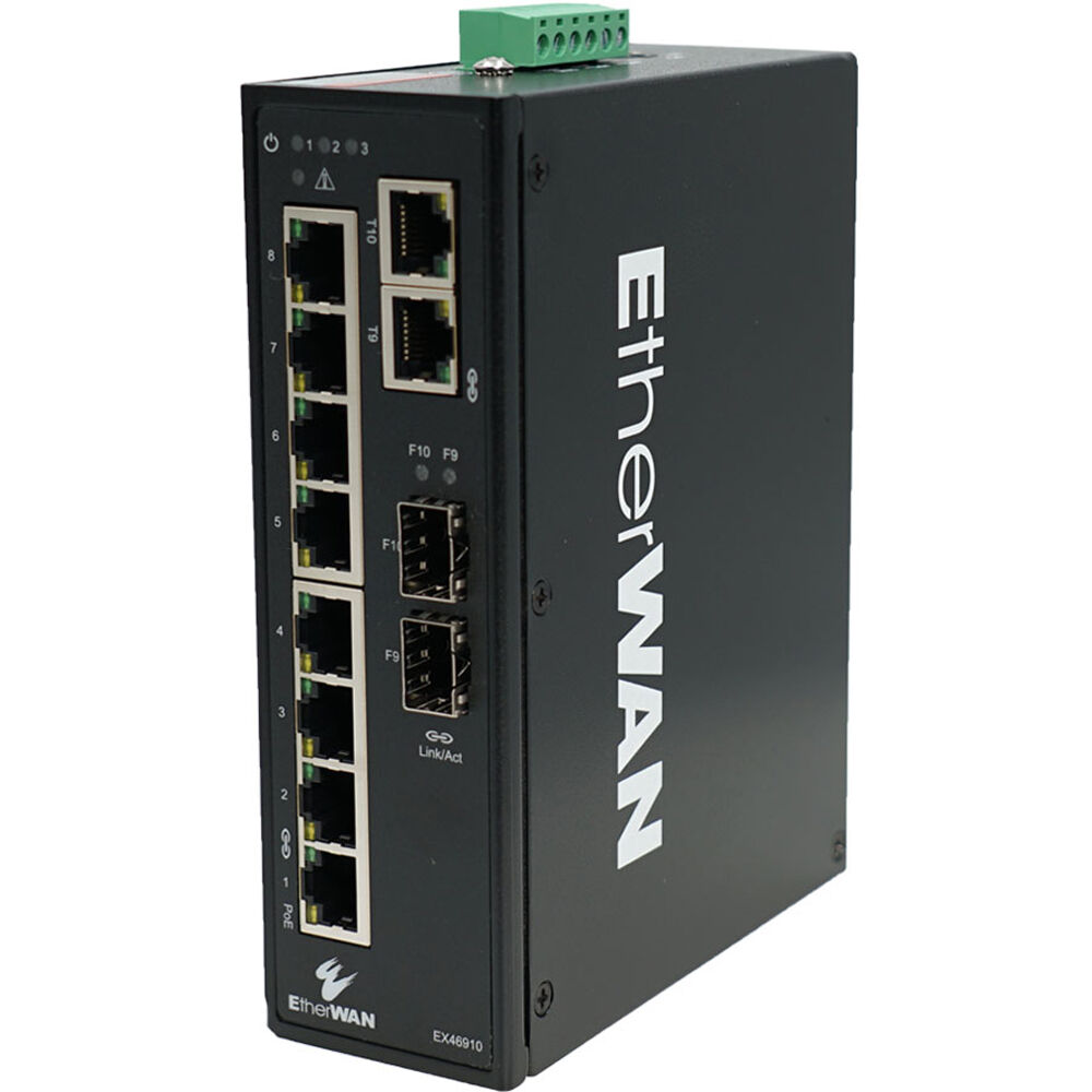 EtherWAN EX46910 Hardened Unmanaged 8-Port Gigabit PoE & 2-Port Gigabit RJ45/SFP Combo Ethernet Switch