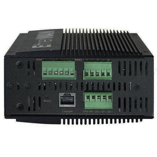From EtherWAN, this is a DIN-rail mounted Hardened Managed 8-Port Gigabit and 4-Port 10G SFP+ Ethernet Switch designed to provide flexibility, speed, and reliability to support networks for urban infrastructure, transportation, security, power substations, and other areas where connectivity is crucial. It supports full capacity switching running at full duplex. The operating temperature range is -40 to 167°F. Key features include fanless operation and high impact, thermal shock, and electrical noise resistance.