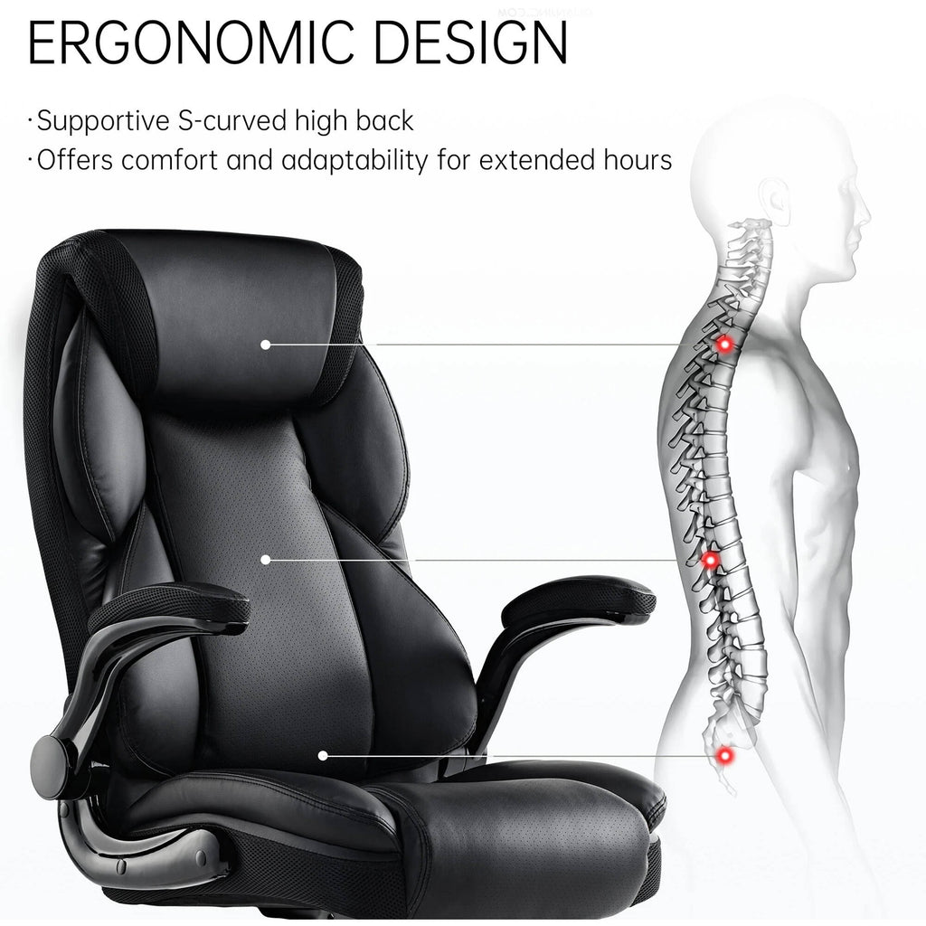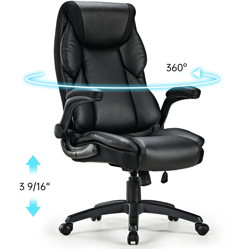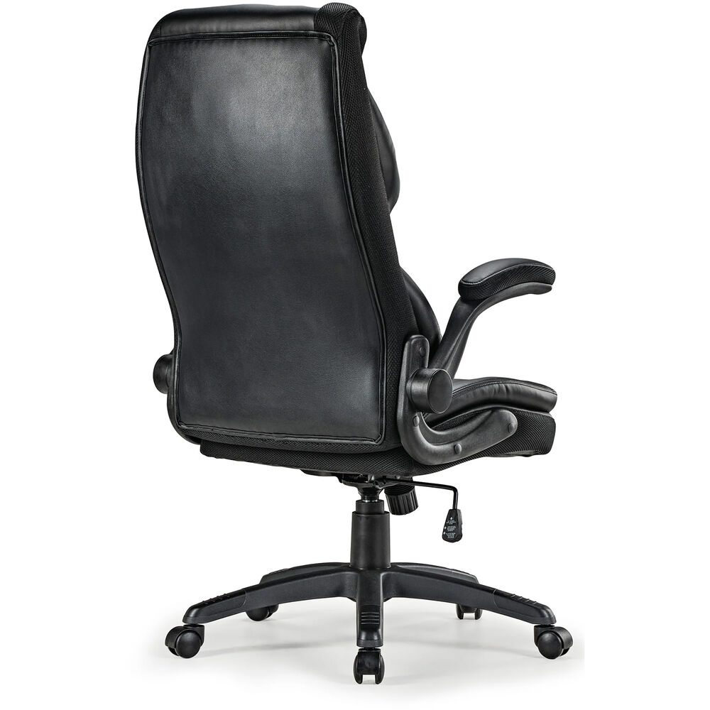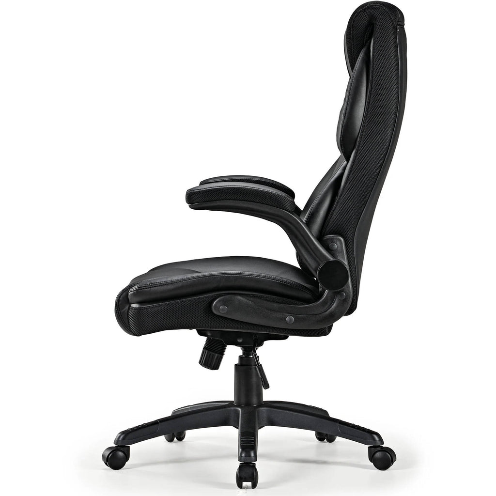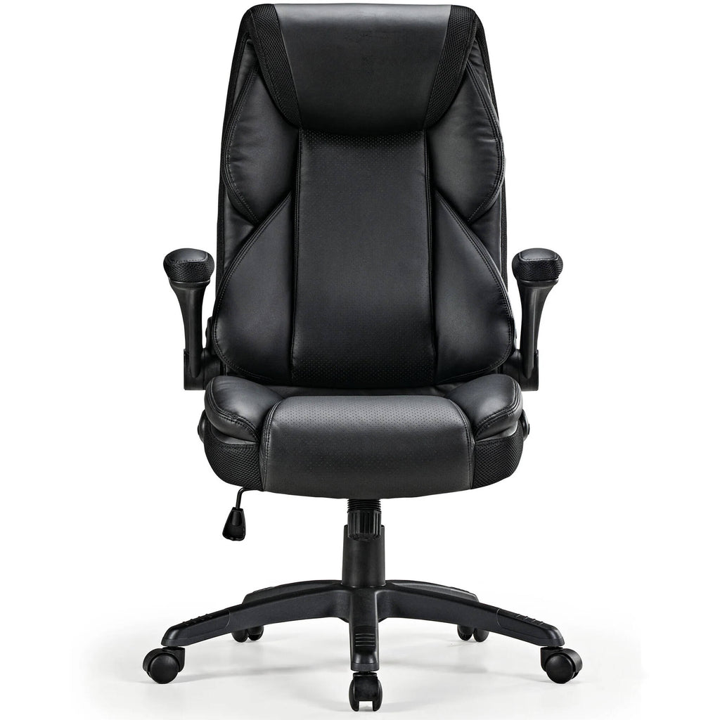 If you're looking for elegant style and comfort, look no further than the black Galene Faux Leather Office Chair from Eureka. This ergonomic chair features space-saving flip-up armrests, 360° swivel, breathable fabric, and an ergonomic seat design that keeps you cool and comfortable throughout the day.