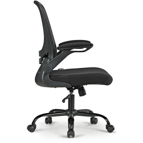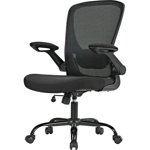 If you're looking for minimalist style and comfort on a budget, look no further than the black Onyx Series Ergonomic Office Chair from Eureka. This chair features a mesh back rest with configurable lumbar support, space-saving flip-up armrests, and a soft sponge cushion to get you through the day.