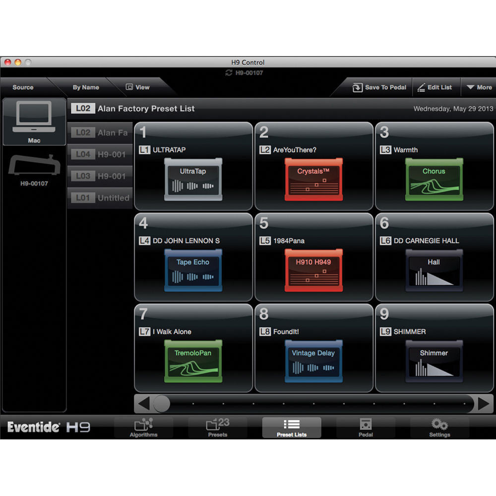 - The H9 Harmonizer can be controlled by the free H9 Control app on your iPod, iPhone of iPad via Bluetooth. The H9 Control app can be used to edit, create, and manage presets and system settings, as well as purchase additional in-app algorithms. All of Eventide's stompbox algorithms and presets are available for in-app purchase. H9 Control is also available for Mac and Windows