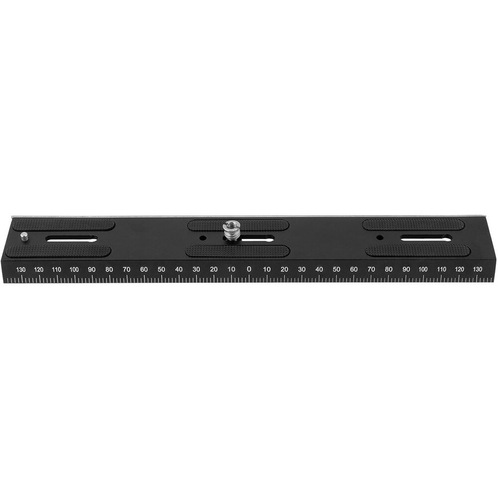 The DSLR Camera Vixen-Style Dovetail Assembly from Explore Scientific is created from high-pressure injection die-cast aluminum for structural integrity and has a black anodized finish to resist scratches and abrasions. This V-block is 11" long and 1.77" wide and features a laser-etched scale in 2mm increments on one side to help you quickly determine the balance point when placing the camera on the mount head. The opposite side features a stainless steel strip to protect the dovetail casting when securing it to the mount head.