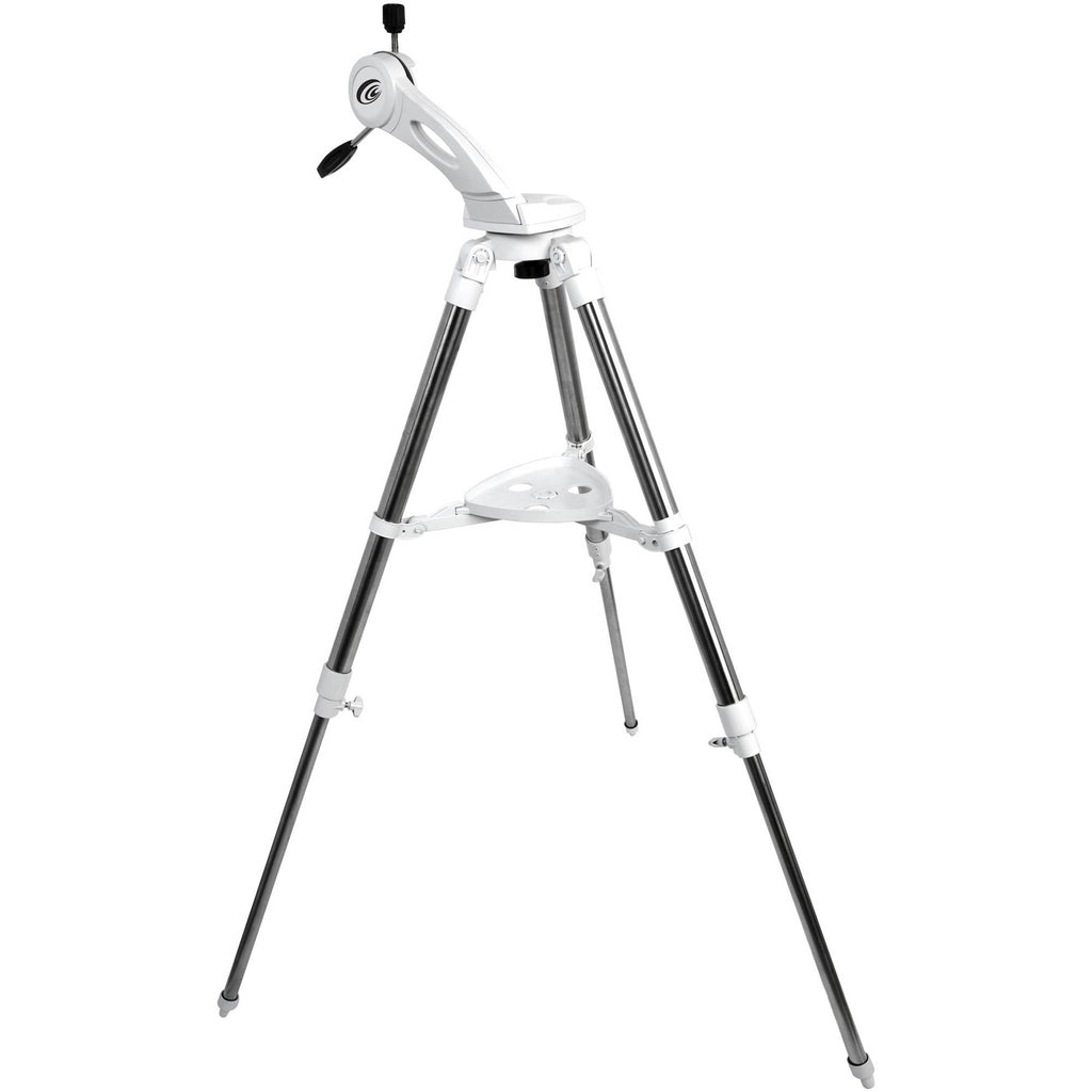 - Single control handle aids in tracking objects and reduces vibration caused by touching the OTA and mount