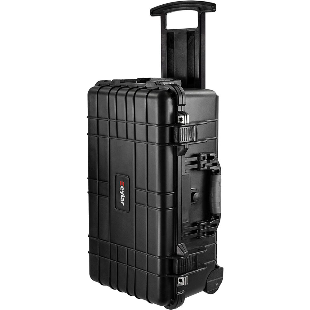 This black, 22" Carry-On Roller Case with Foam from Eylar is designed to be convenient and customizable with four layers of foam including two customizable pull-and-pluck cube layers, one bottom pad layer, and one top egg crate layer. This case also meets TSA's strict requirements and is safe for travel with a pressure knob on its front. An innovative pressure-equalization valve allows the case to quickly equalize to different air pressures. The case features integrated wheels for ease of travel and two padlock-adaptable hasps.