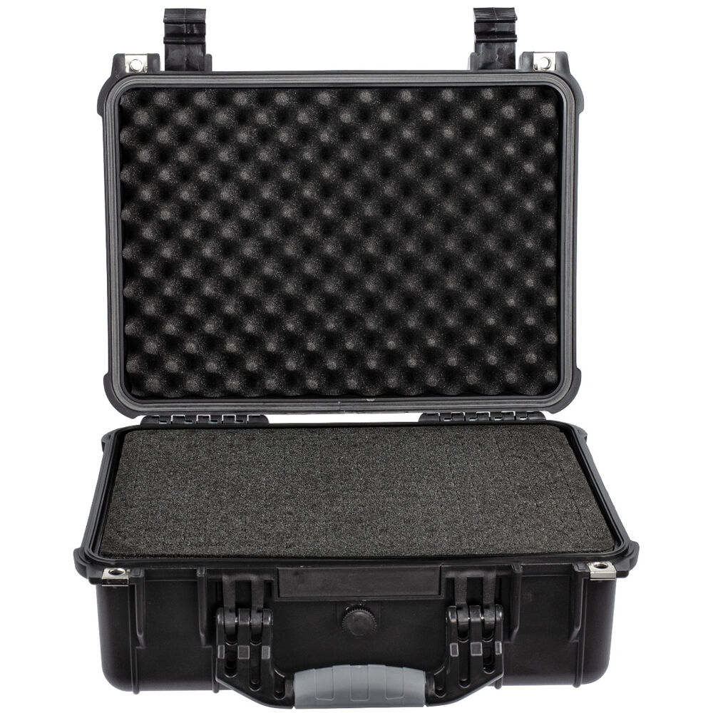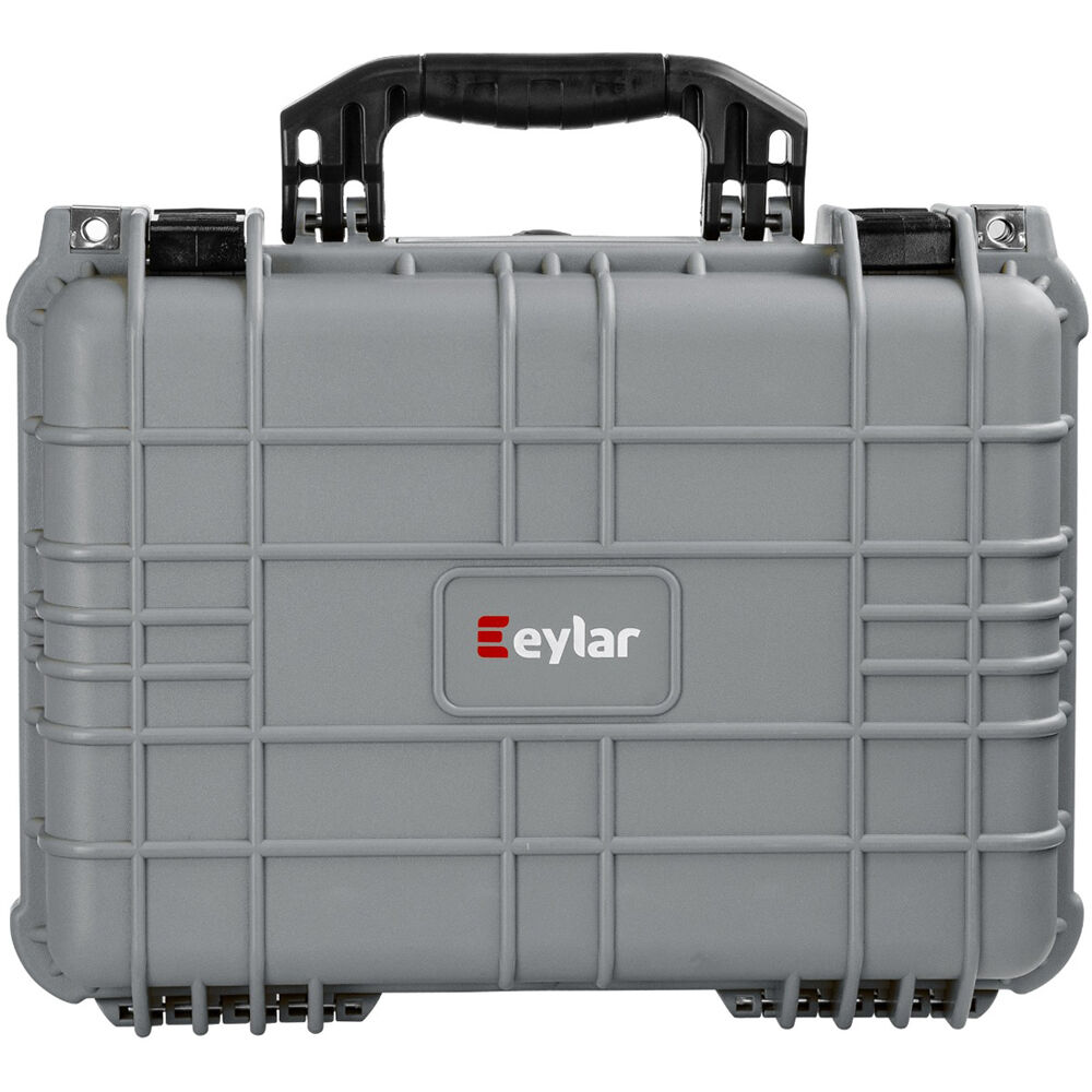 This gray Gear Case from Eylar is great for storing cameras, electronics, tools, and more. Pluck-and-pull foam along with a sturdy design will safely store sensitive items during travel. This case is IP67 water, dust, and shockproof. The hard case includes three layers of foam, and an innovative pressure equalization valve allows the case to quickly equalize to different air pressures when traveling from different altitudes. A rubber gasket lines the rim of the case, creating a waterproof seal when latched closed, and two padlock hasps allow this case to be secured with padlocks and meet TSA requirements for transport.