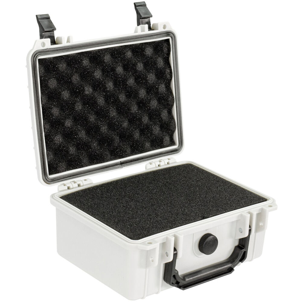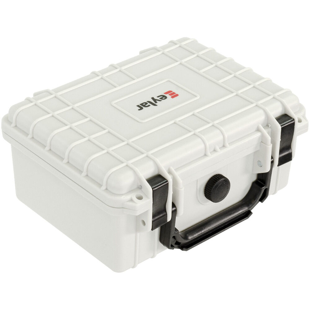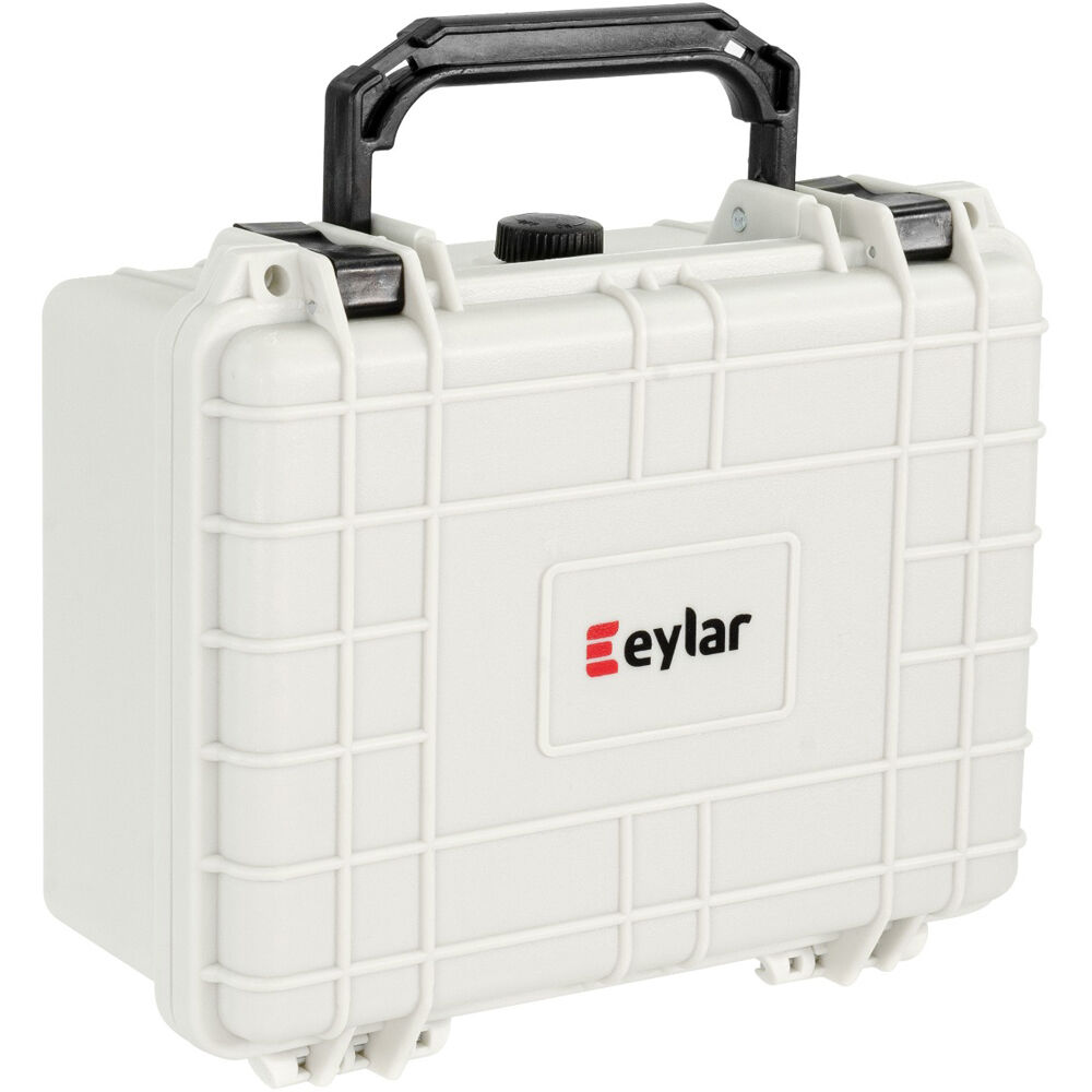The white Eylar Small Case with Foam is great for securing small to medium-sized items like cameras, tools, and gear. The case has pluck-and-pull foam for a safe and snug fit inside of a water-resistant and shockproof shell. The interior dimensions are 3.62 x 5.68 x 8.18". This stackable design has lockable fittings that meet TSA requirements for checked luggage.