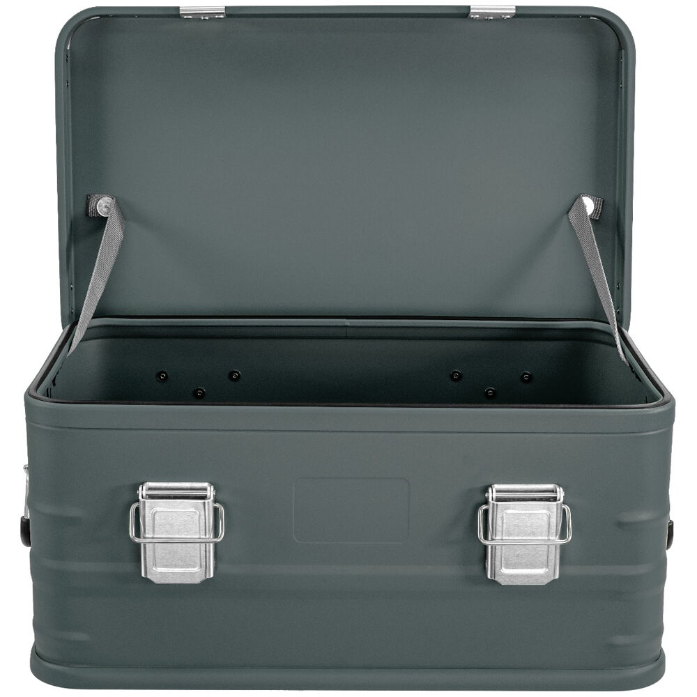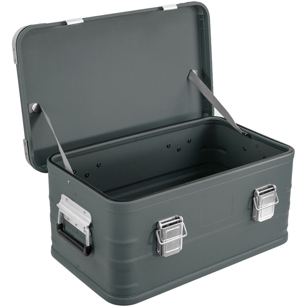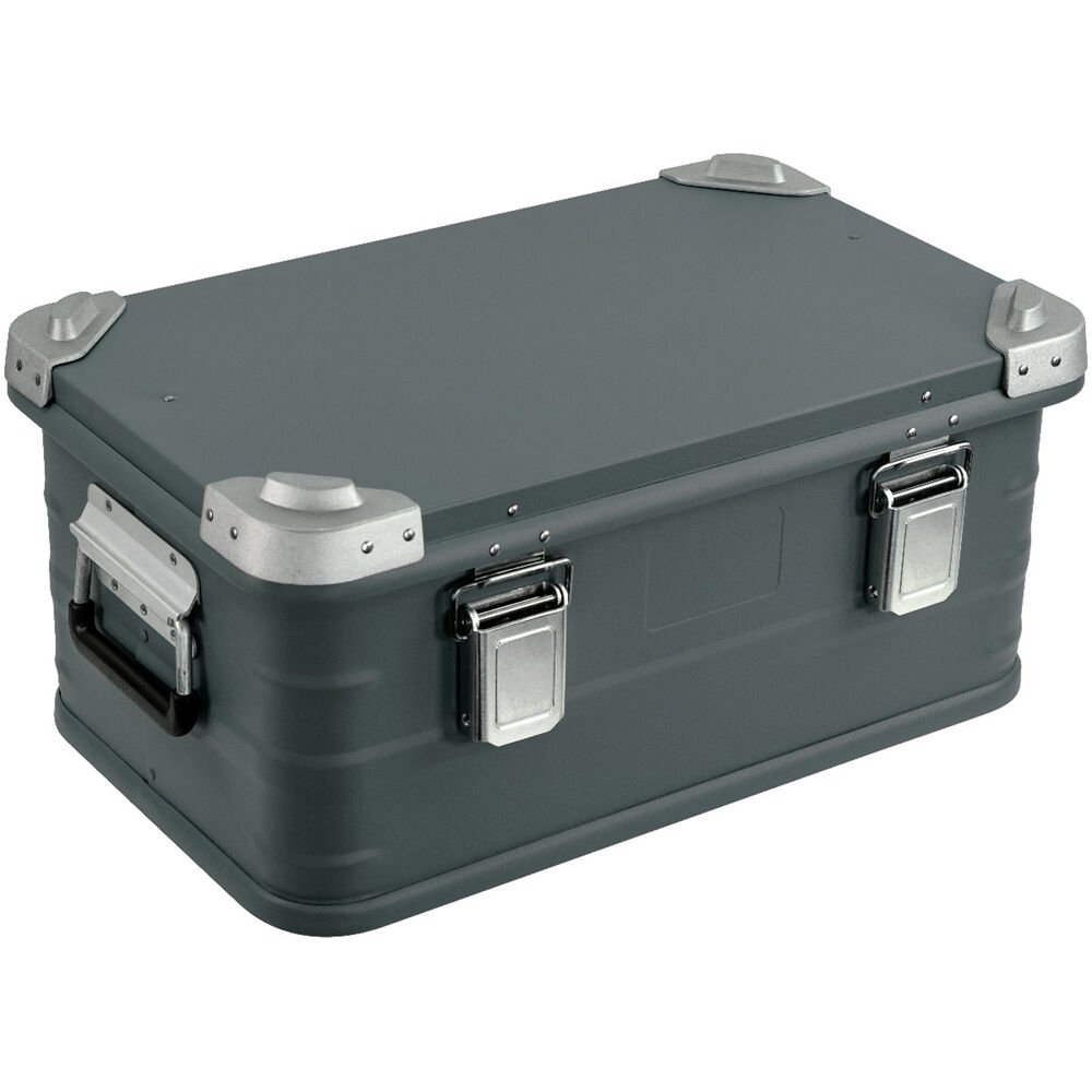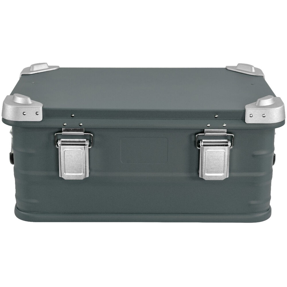 This gray 30 liter Crossover Aluminum Overland Storage Box from Eylar is an aluminum storage box with steel latches that can accept padlocks to keep your gear secure. The box features reinforced corners to provide extra protection to the contents and make stacking the boxes easier. Featuring an O-ring, the box has an IP5 weather-resistance and dustproof rating. The spring-loaded low-profile handles feature rubber coatings for comfortable carrying.
