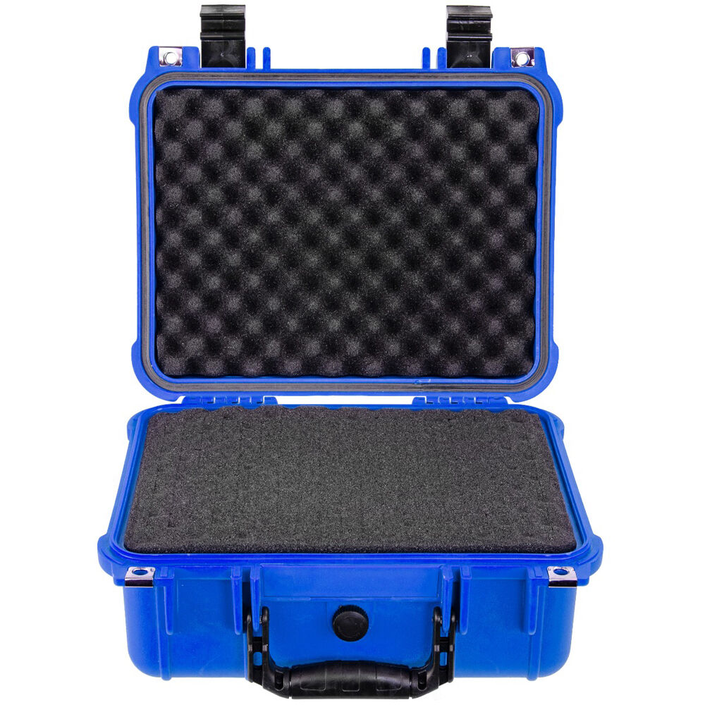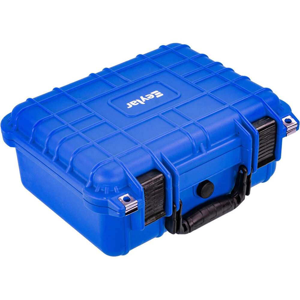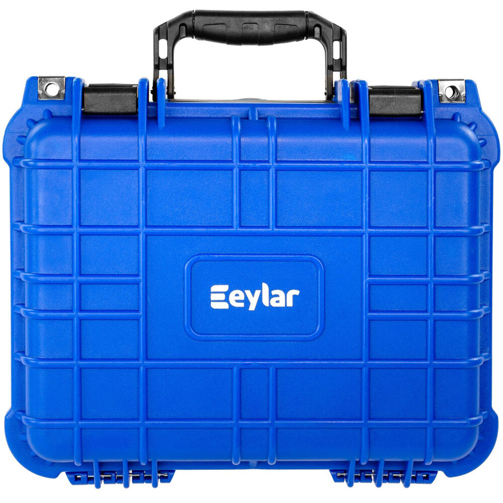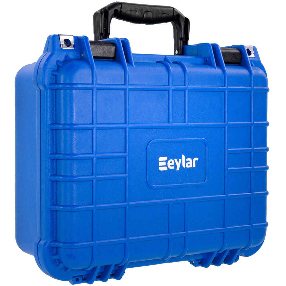 The 13.4" blue Eylar Standard-Sized Gear Case has internal dimensions of 5.2 x 8.8 x 11.8" and is designed to secure your equipment for transport or storage. The case's reinforced polypropylene plastic build is water, dust, shock, and crushproof. An integrated adaptive pressure-equalization valve releases built-up air pressure, allowing for atmospheric equalization when transported to high or low altitudes, as well as when transported inside cargo vacuums. This hard case comes with two layers of easily customizable pull-and-pluck foam to match the shape of the equipment you want to store, a bottom lining padding layer, and a top egg crate foam layer. Two push-pull latches secure the entire length of the hard case, and two adaptable padlock accessories allow for secure storage at home or on the go.
