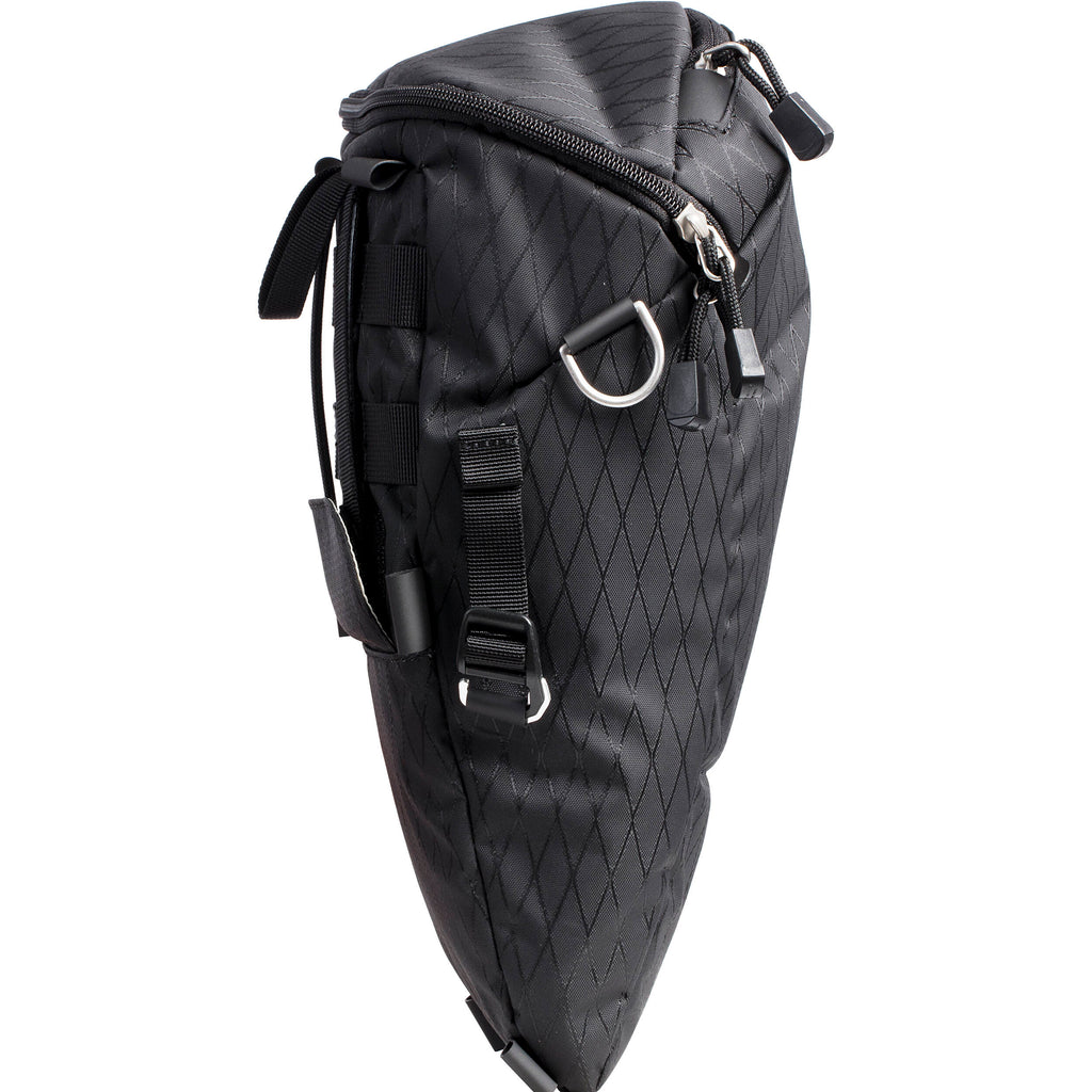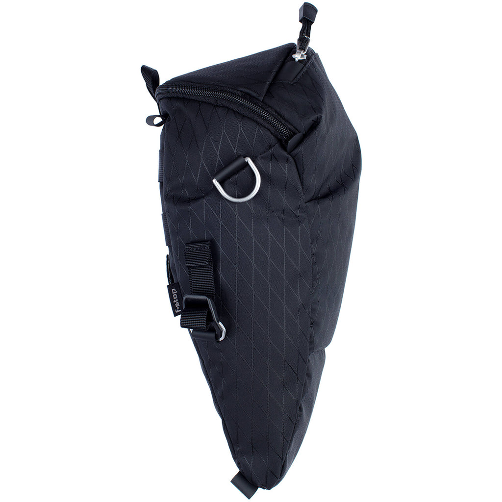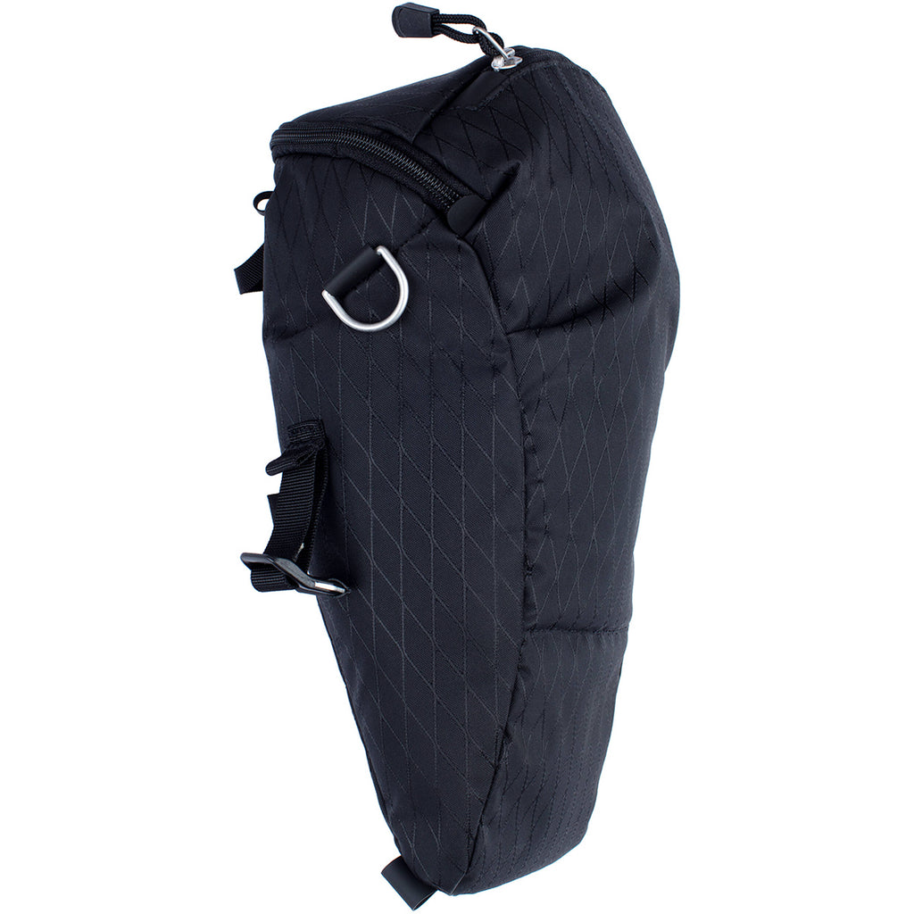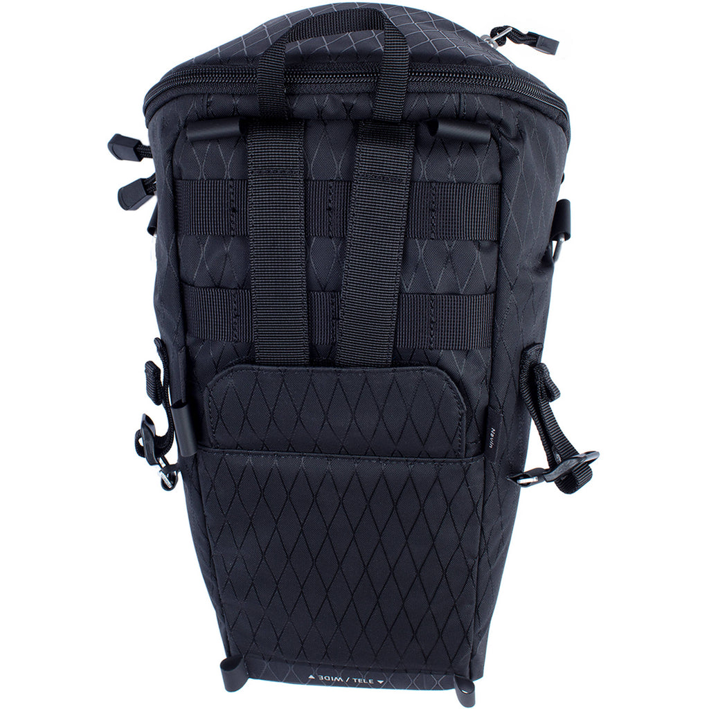 Its exterior is made of a durable proprietary waterproof nylon that offers superior rip and tear resistance, with strong welded seams and panels for durability and longevity. A removable shoulder strap lets you wear the bag as a stand-alone minimalist camera bag, and MOLLE straps on the back allow you to easily connect it to larger bags or belts. There are metal D-rings to mount it on f-stop's Mountain Series shoulder straps, and Gatekeeper attachment points allow you to wear it on your chest.
