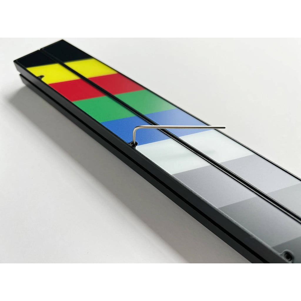 The sticks feature a laminate standard color bars pattern that provides a clear visual indication that the sticks have "banged" shut. A tongue-and-groove design prevents light leaks between the top and bottom of the sticks when they are closed. An Allen wrench is included to tighten the screw when installing on the board.