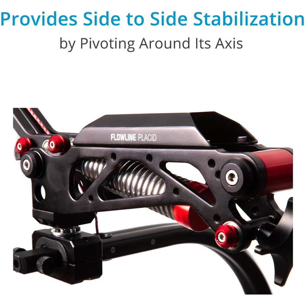The FLYCAM Flowline Placid Two-Axis Spring Arm attaches to your Flowline camera support and provides vibration isolation to your camera, camera rig, or gimbal in two axes. Well suited to help create smooth walking or running shots, the Flowline Placid supports cameras and rigs from 11 to 44 pounds and works to help minimize both vertical and side-to-side vibration.