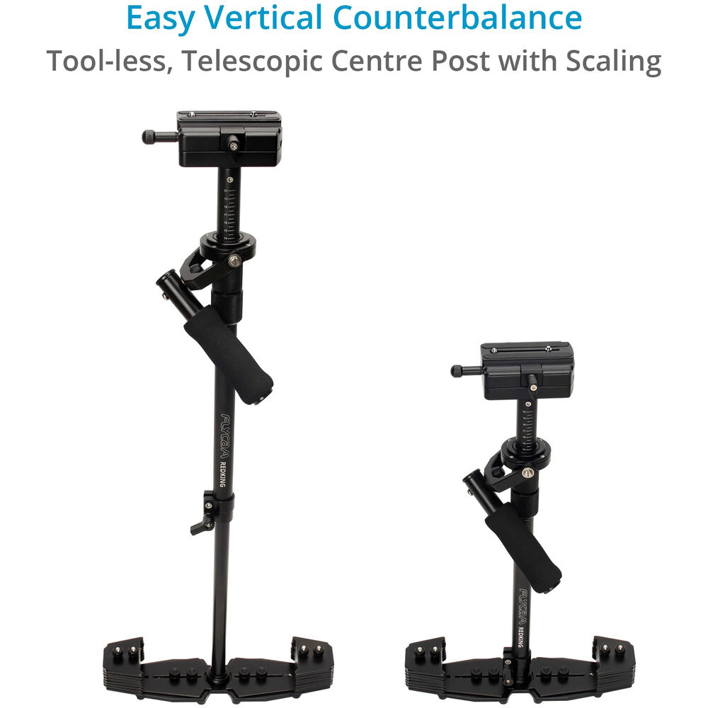 The comfortable vest supports waist sizes between 28 and 60", chest sizes from 38 to 52", and it secures with buckles and hook-and-loop straps. The shock-absorbing arm attaches to the vest and supports up to 22 lb, and can extend to a maximum length of 18". It features a standard 16mm mounting post for the Redking, and 19 and 22mm bushings are also included. The Redking camera stabilizer mounts onto the arm's post and supports a camera rig up to 7.5 lb. It features an adjustable balance system to keep your shots smooth and steady as you run, walk, ride, or climb.