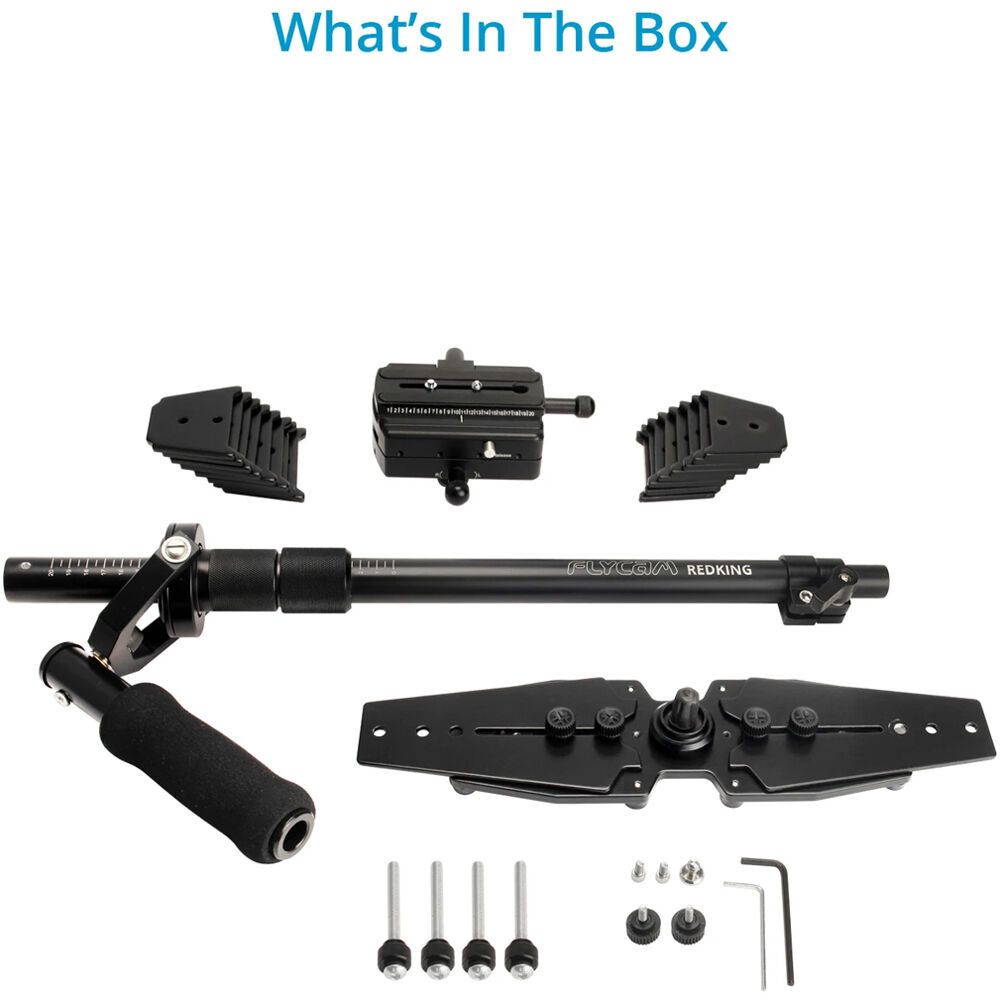 Note: The foam handle design may vary according to availability. FLYCAM Redking Video Camera Stabilizer By balancing the pan, tilt, and roll axes around a central handle, the FLYCAM Redking allows you to achieve smooth-moving cinematic shots as you follow your subject. It works to stabilize and keep the camera horizontally balanced as you walk, run, climb stairs, and otherwise move about. The Redking supports up to 15 lb loads, so in most cases you can mount your camera along with a matte box, mic, or other accessories you may need for the shot.