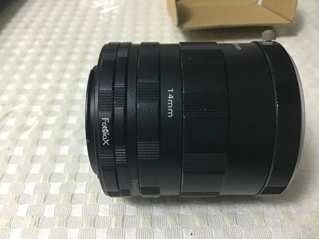 - This tube set includes a lens-coupling ring and a body-coupling ring; three extension tubes of various sizes are also included to build up to the desired magnification. Life size image can be achieved with this set up.