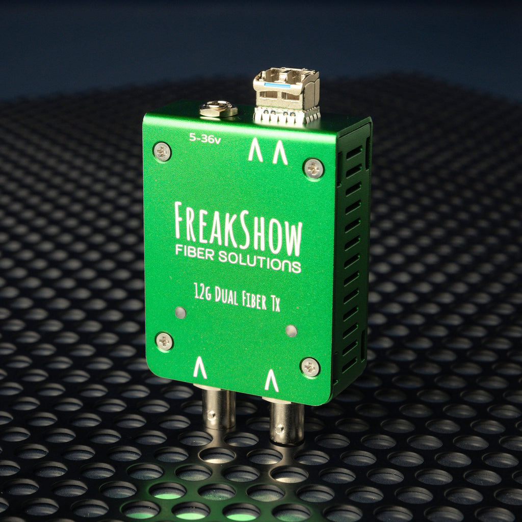 - Freakshow HD 12G-SDI Dual SDI to Fiber Transmitter with DC Barrel Power Connector