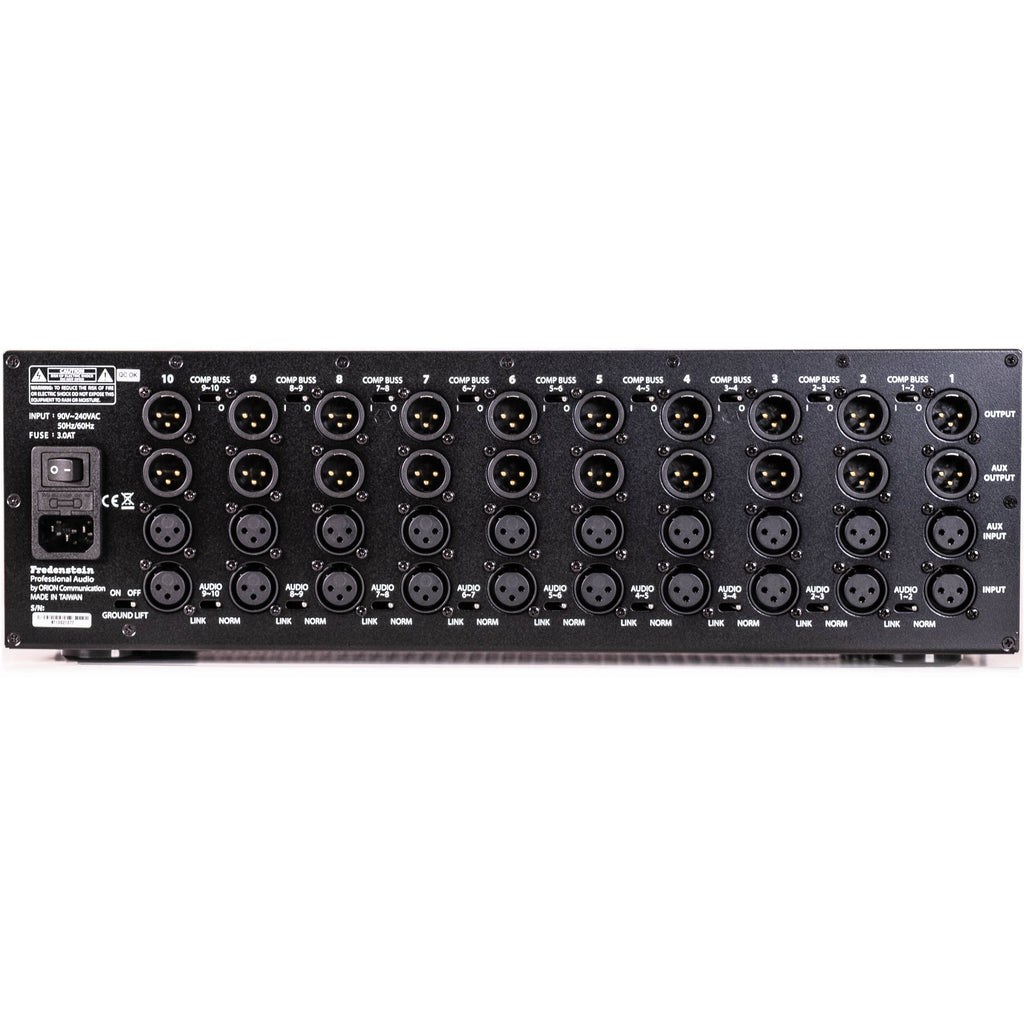 The Fredenstein Bento 10S is a high performance module carrier for Fredenstein Series 500 modules or API-500 compatible plug-in cards in two space 19 inch rack format. The unit accepts a maximum of 10 modules. The Bento 10S features several important upgrades compared with third party products: Universal power supply: accepting mains voltages from 90V AC to 240V AC, 50 to 60 Hz. Increased output currents: +-16V DC 3.2A and +48V DC 0.3A Auxiliary Audio Inputs and Outputs Built-in Audio Routing: Modules can be daisy-chained by simply flipping switches on the back-panel. Compressor buss linking: Compressor modules can be linked by engaging switches on the back-panel as well. Multi-Layer Backplane: Increased signal integrity and lower noise floor. Ground-lift switch: In case of ground loops, the audio ground and the protective ground can be disconnected. Please use only if absolutely necessary.