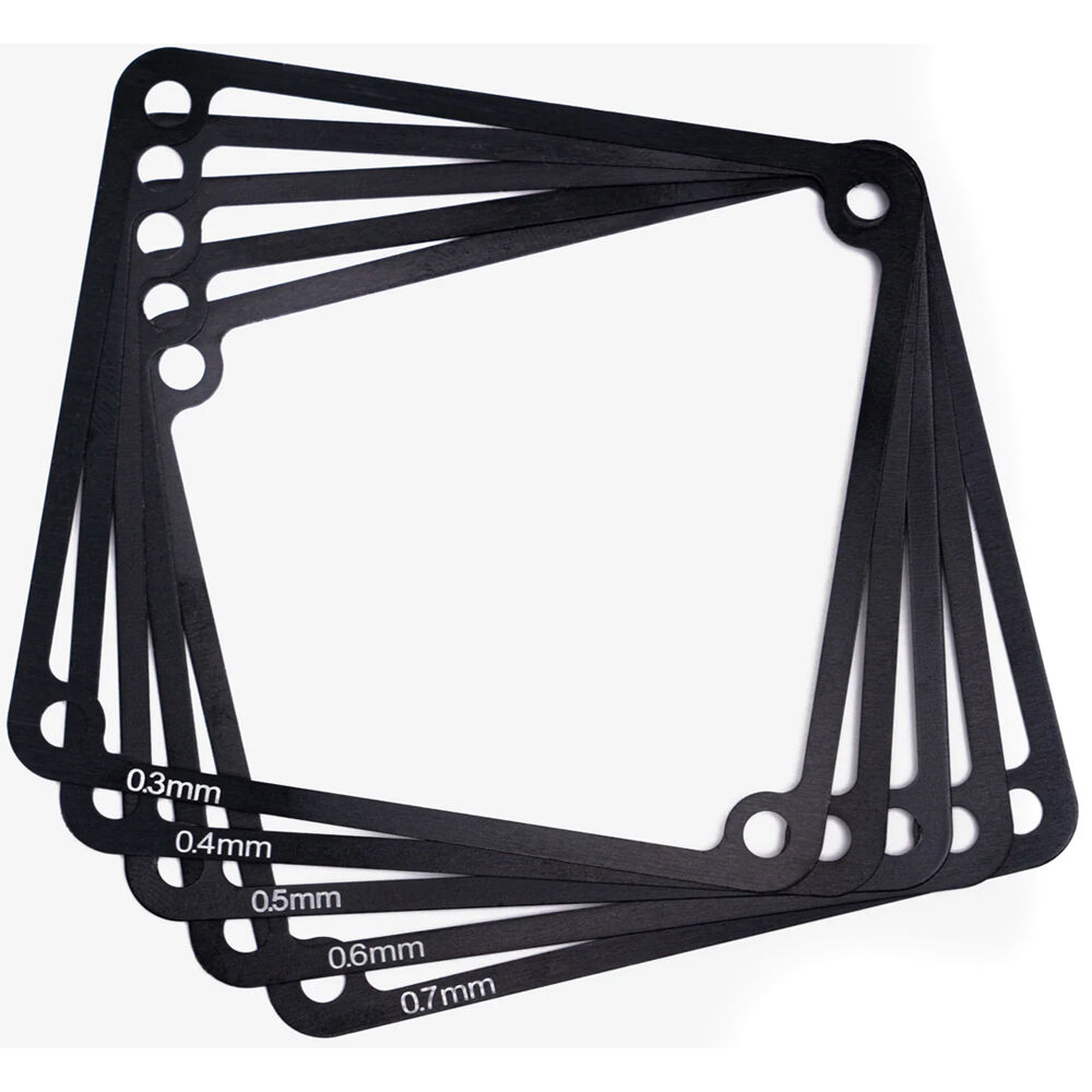 Adjust the back focus on your Ember S5K or Wave camera with this Lens Mount Shim Kit from FREEFLY. The kit includes five shims that can be stacked to shim the back focus of your lens or lens adapter at the lens mount. The shims are made from metal and feature laser-engraved size identification. Shim sizes included in the kit are 0.3, 0.4, 0.5, 0.6, and 0.7mm.