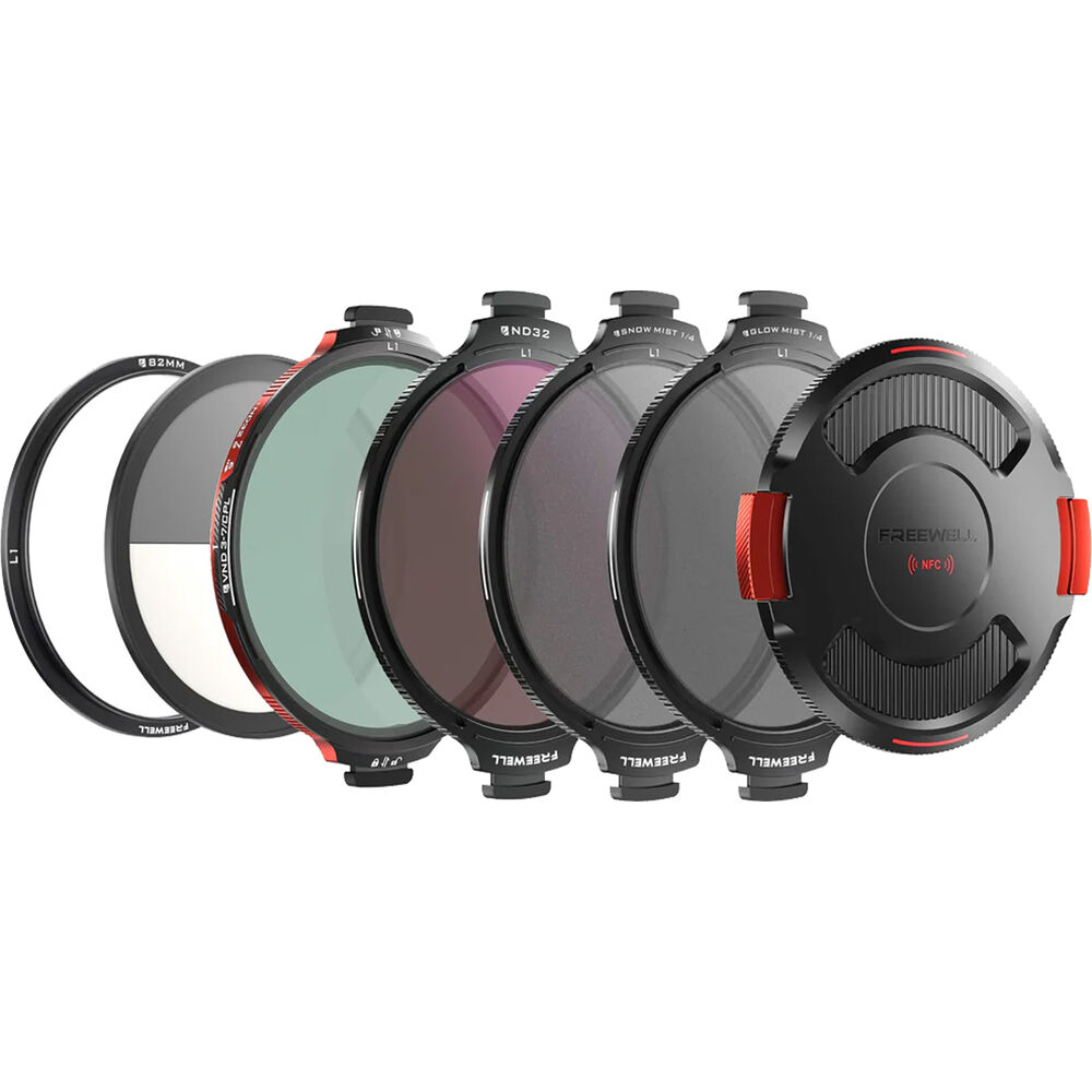 The 82mm Freewell Real Locking VND/CPL Filter Mega Kit is a variable neutral density (VND) and circular polarizer (CPL) filter system that uses a secure tab-locking mechanism and includes filters constructed from multi- and resistance-coated glass with an aluminum frame. It's designed for professional filmmakers and photographers who need precise control over exposure and reflections without the risk of accidental detachment. 1/4-grade White Snow Mist and Black Glow Mist filters are included in the kit to further expand creative capabilities.