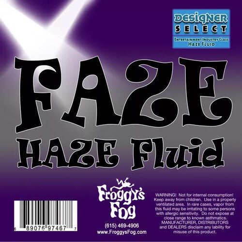 Enjoy the fine veil of airborne haze from Froggy's Fog Faze Haze Juice, which has been designed for use in a wide variety of water-based haze machines. This 1-gallon jug allows you to produce a beautiful, translucent canvas of haze with a long hang time. Suitable for use by mobile DJs, nightclubs, laser tag arenas, and in lighting enhancement applications, the haze produced is long-lasting and remains clean, dry, and odorless. The fluid is safe to use and made from deionized water and pharmaceutical-grade chemicals approved by the FDA.