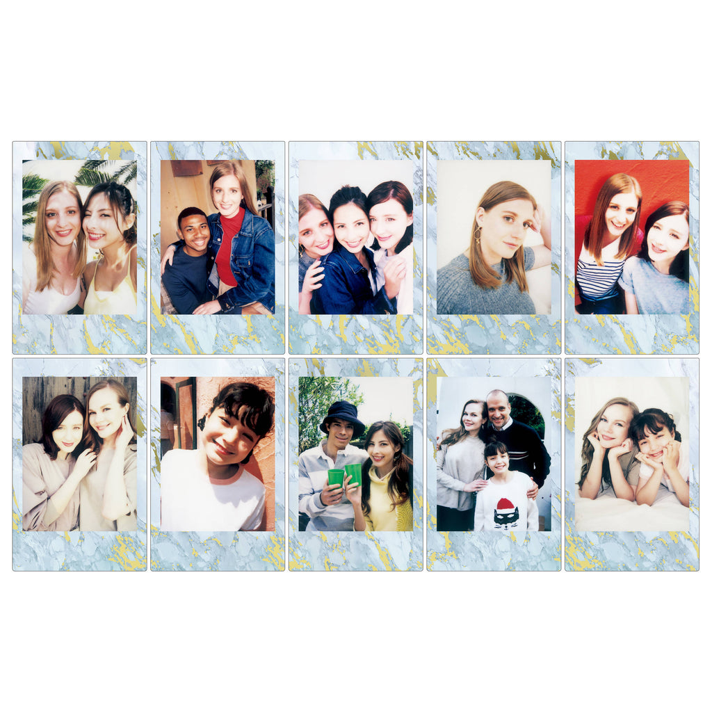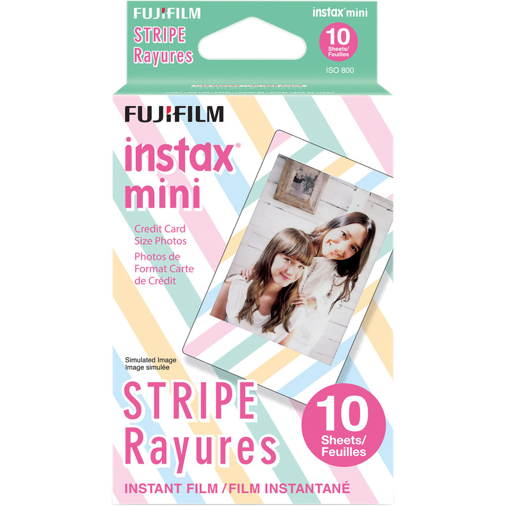 For FUJIFILM INSTAX Mini CamerasBlue Marble Patterned FramesCredit Card-Sized PrintsISO 800/30° This single pack of FUJIFILM INSTAX Mini Blue Marble Instant Film contains 10 sheets of instant color film that is compatible for use with the INSTAX Mini series of cameras. This film features vivid color reproduction with natural skin tones when used under daylight (5500K) or electronic flash lighting conditions. A refined grain structure provides high image sharpness and clarity as well as a versatile ISO 800 film speed for use with a wide variety of subjects. Each sheet of film produces a 2.4 x 1.8" glossy image area that is surrounded by a continuous blue marble patterned border. Quick, instant developing is possible when working in temperatures between 41-104°F.