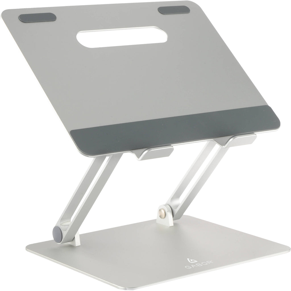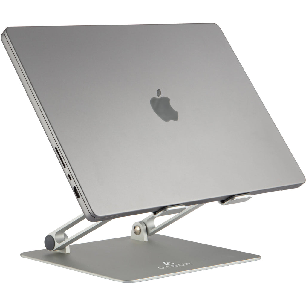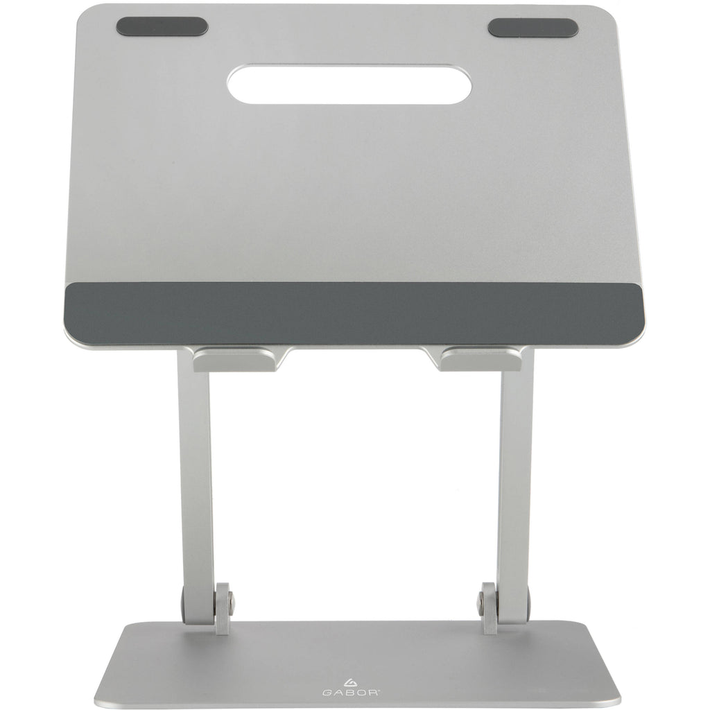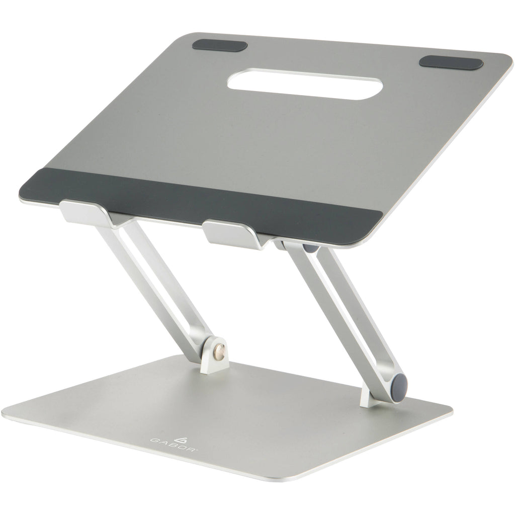 Optimize your workspace for comfort and efficiency with the Gabor Laptop Flex Stand. This fully adjustable aluminum stand can raise your 10 to 17" laptop screen up to 10.5" for an eye-level view that helps to relieve shoulder and neck tension. The tilt also provides added comfort as you type. Simply extend the stand to your desired height and tighten it to lock in the position. The stand collapses to a 1.25" thickness for easy travel.
