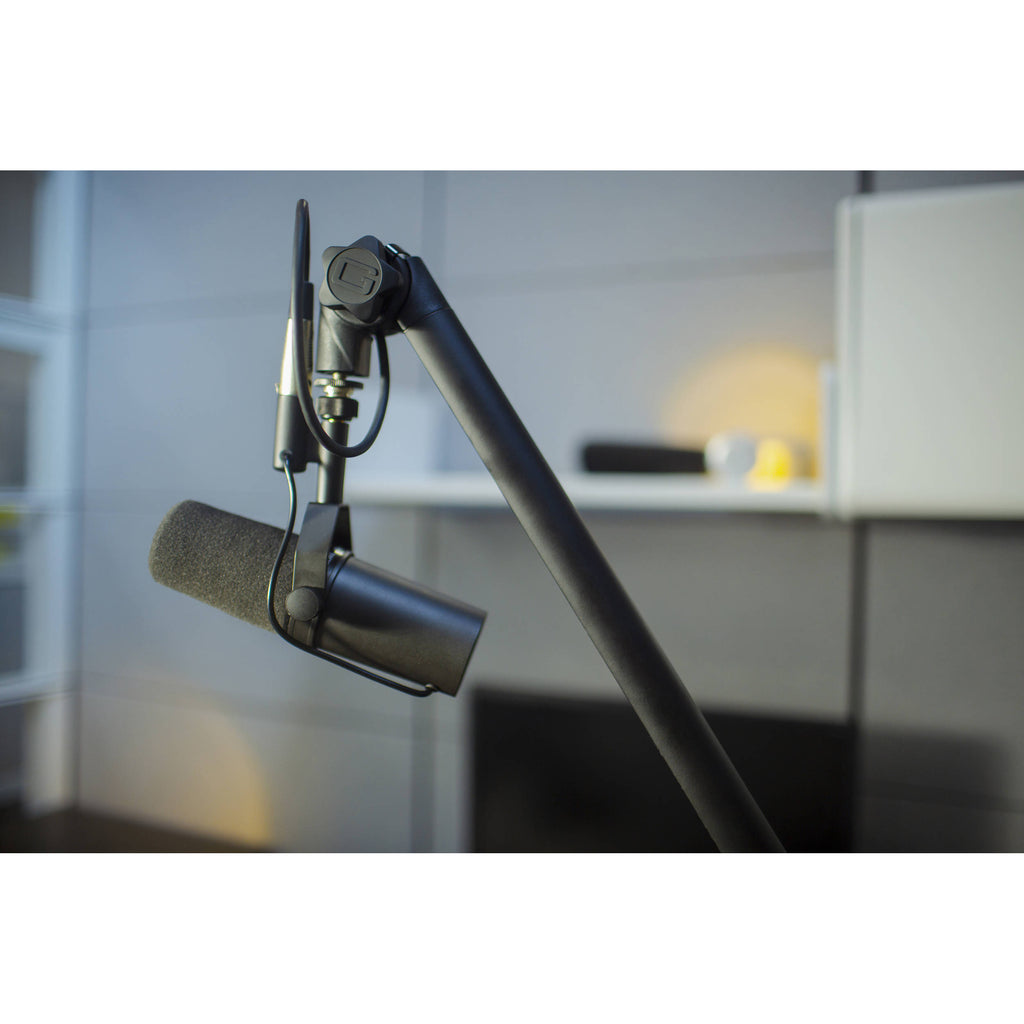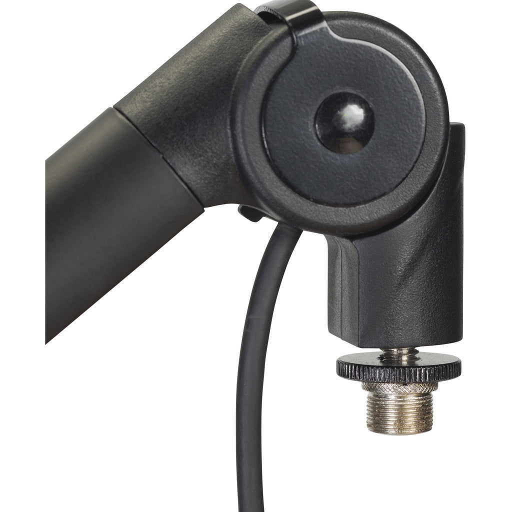 The internally routed 10' XLR cable contributes to a clean appearance and ensures proper connectivity to your mixer or mic preamp. The 16" lower arm and 17.25" upper arm allow a maximum extension of 32.3" while supporting a weight capacity of up to 4.4 pounds. With rugged steel construction, metal coil springs, and a durable black powder coat finish, this stand is built for reliable service day after day.