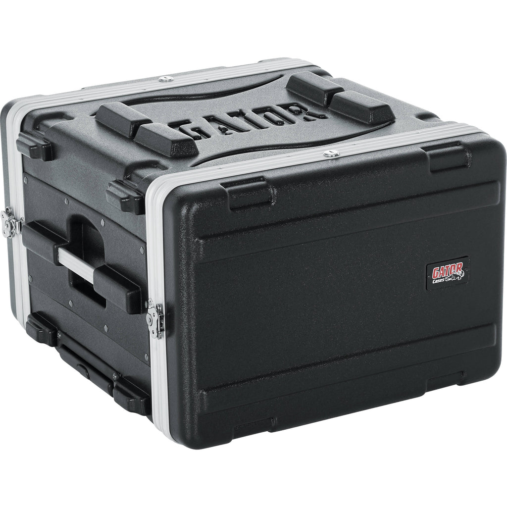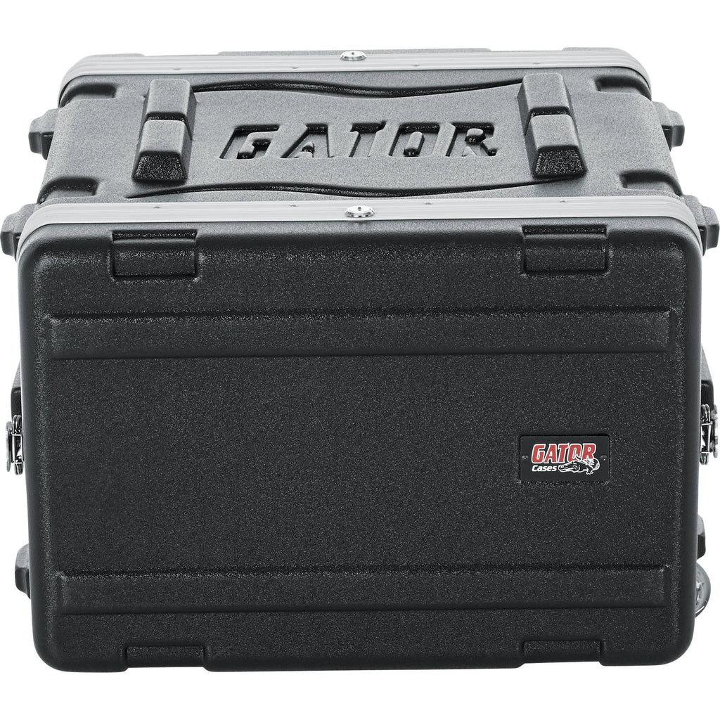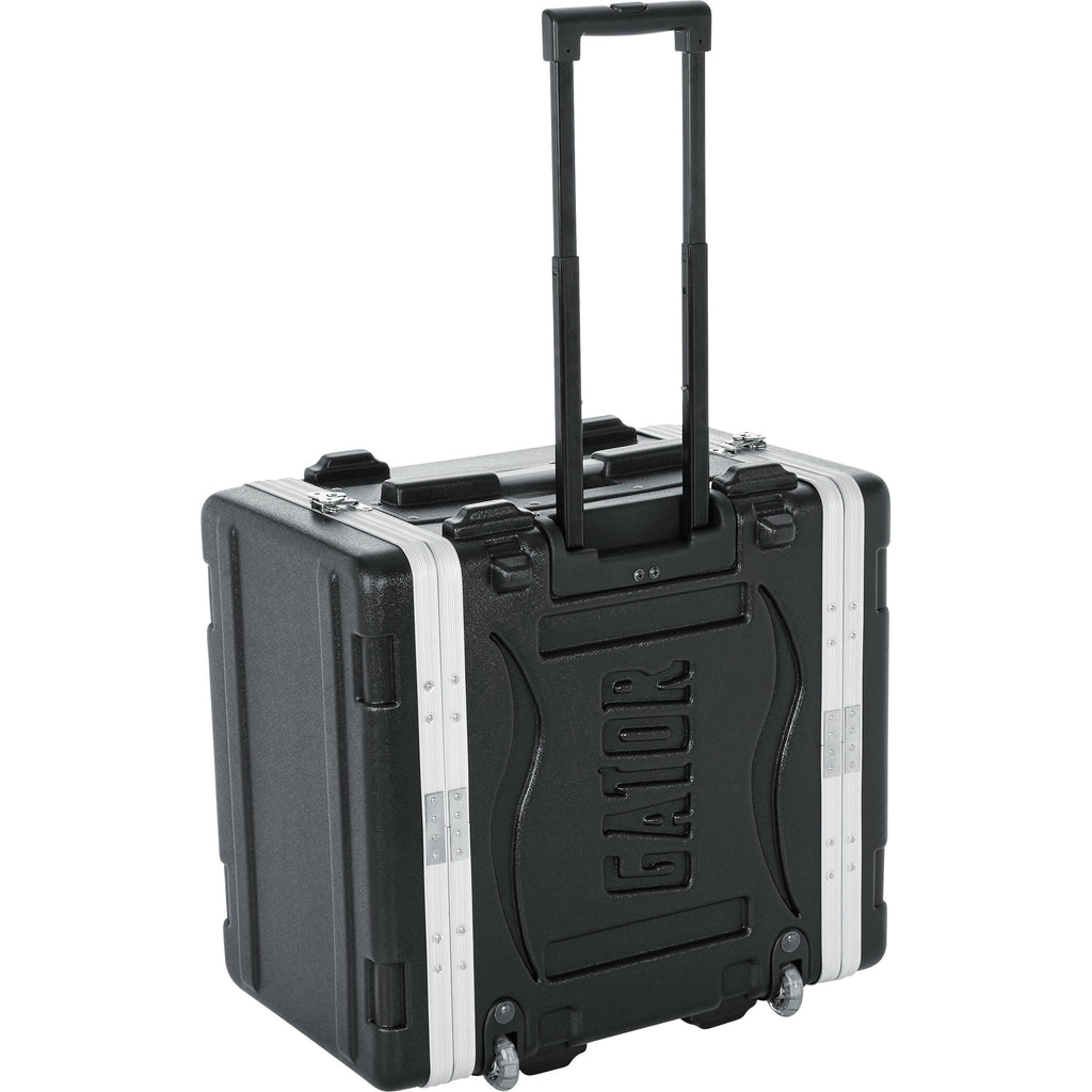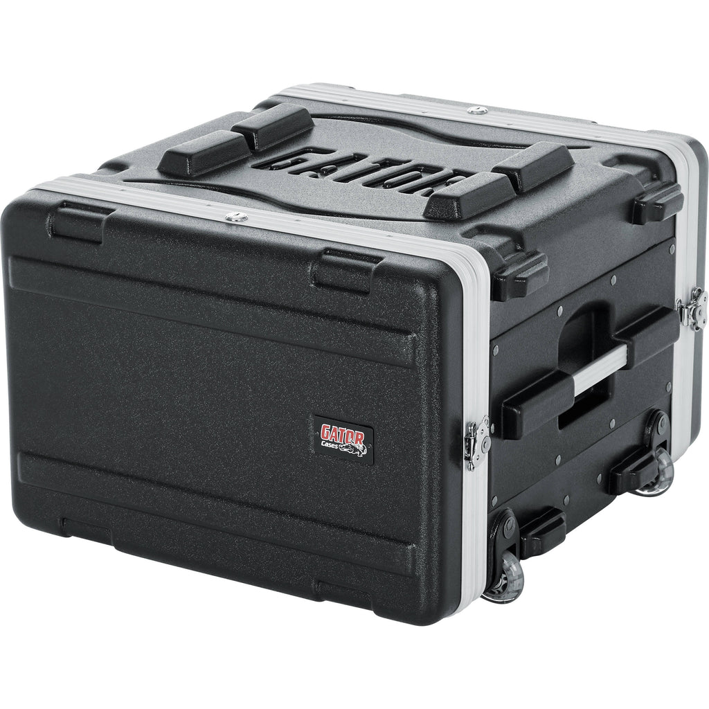 The Gator Cases GRR-6L Roller Rack Case (Black) is a high-density military-grade lightweight polyethylene case with 6 RU of space and 18.75" rackable depth. The case has front and rear rack rails and threaded field-replaceable 7.0mm zinc-plated-steel rack rails. It has locking front and rear lids and heavy-duty twist latches. The case can be transported using the comfortable recessed side handles, a rugged pull-out handle,and roller-blade-style recessed wheels.